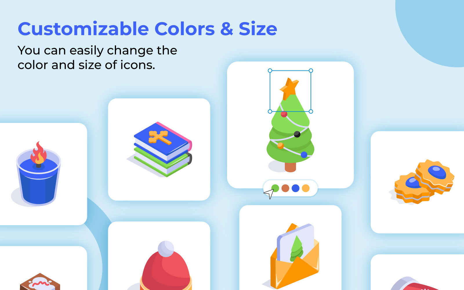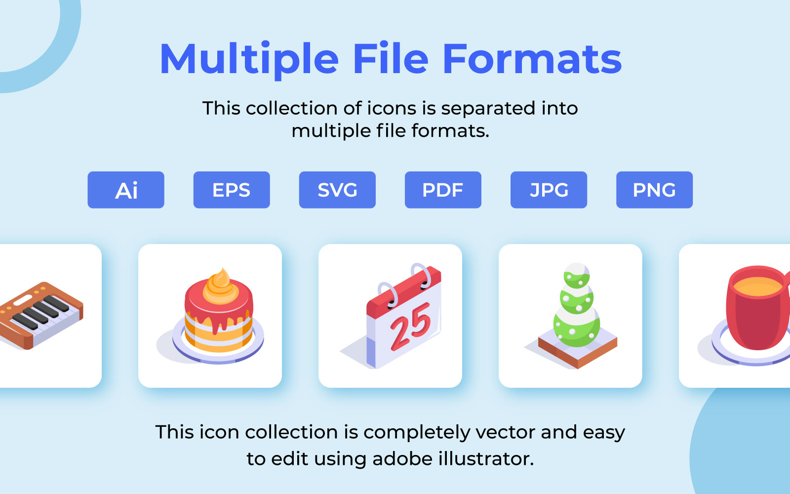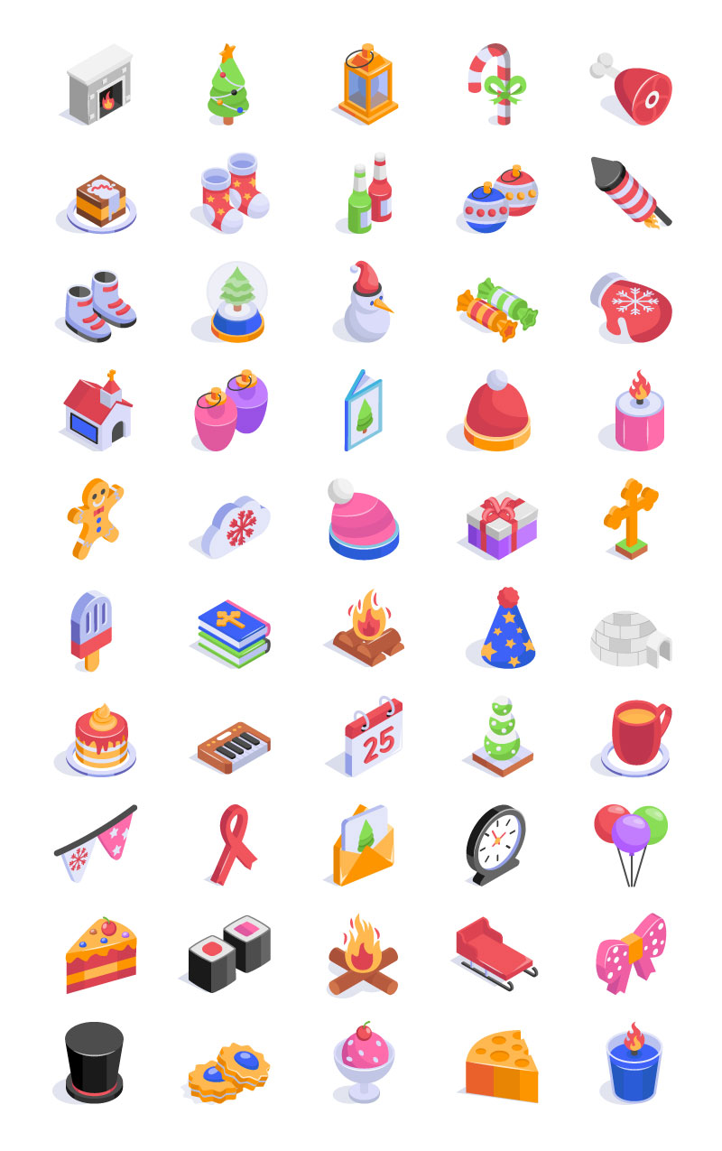 A collection of isometric icons representing various Christmas and holiday-related items. Whether used for design projects, social media posts, or personal projects, these icons are sure to add a touch of holiday cheer and magic.