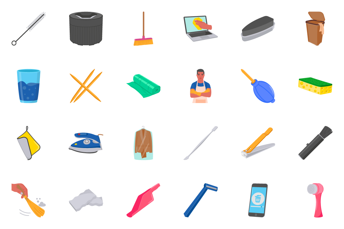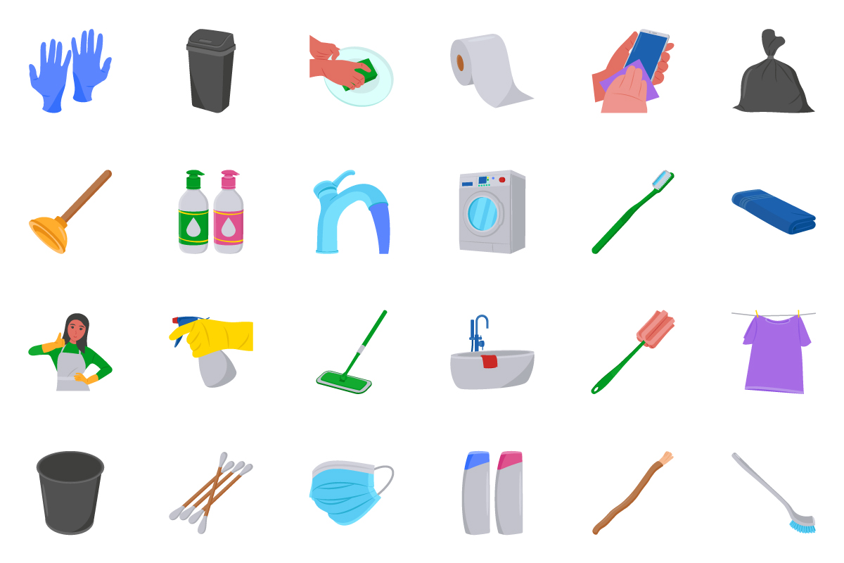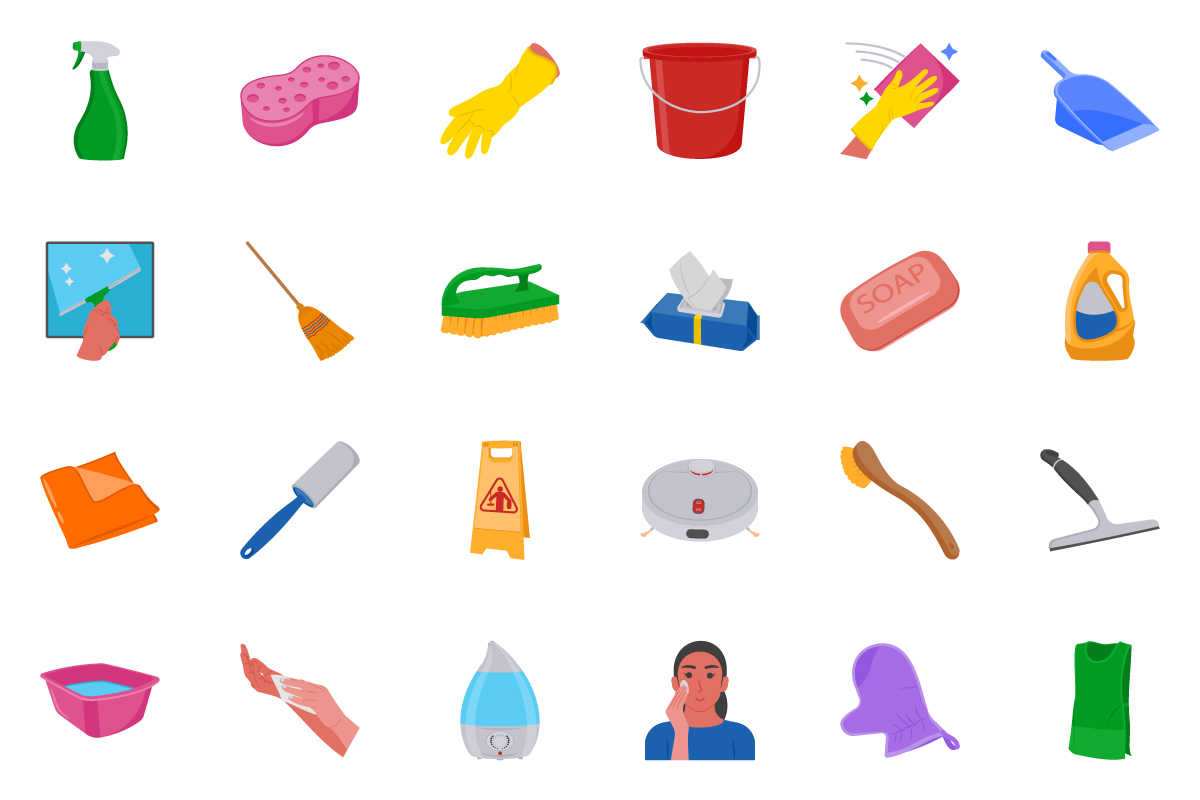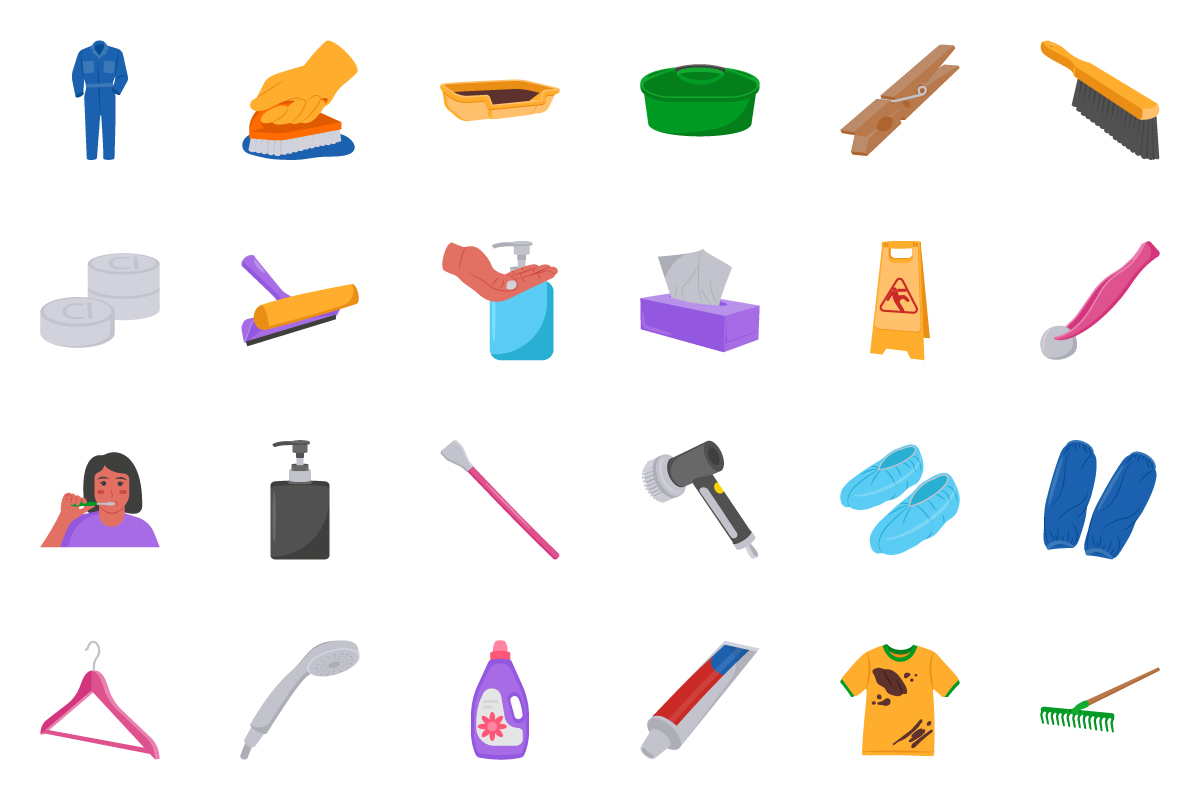 Cleaning Icons Pack – Household Chores and Hygiene Symbols Icon Set