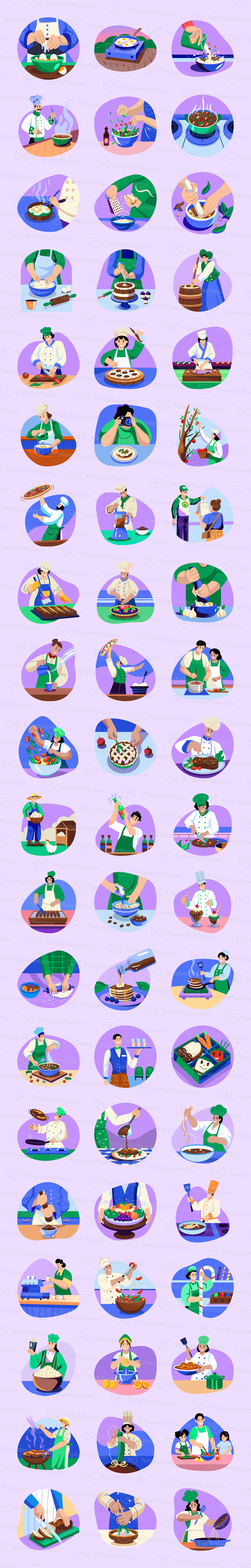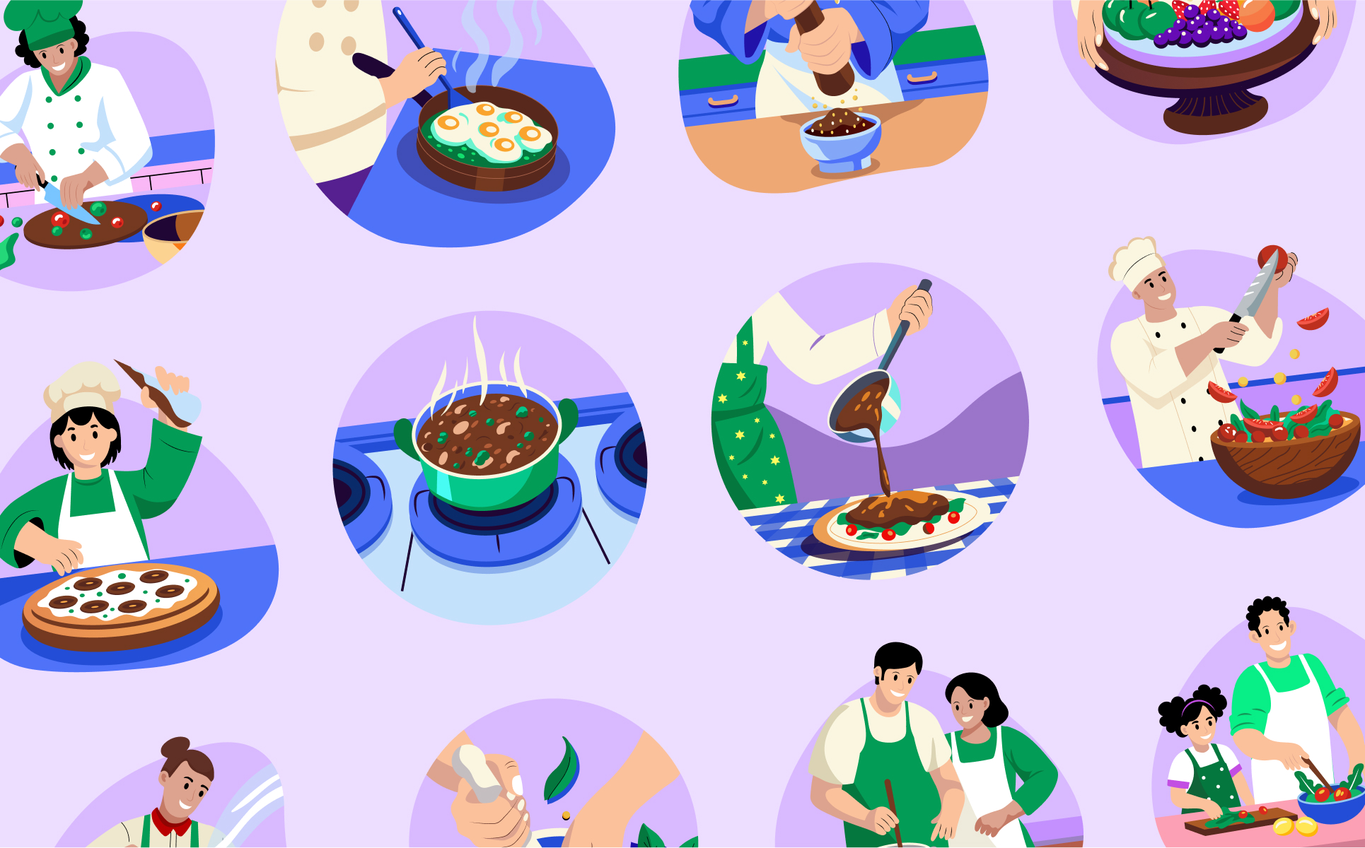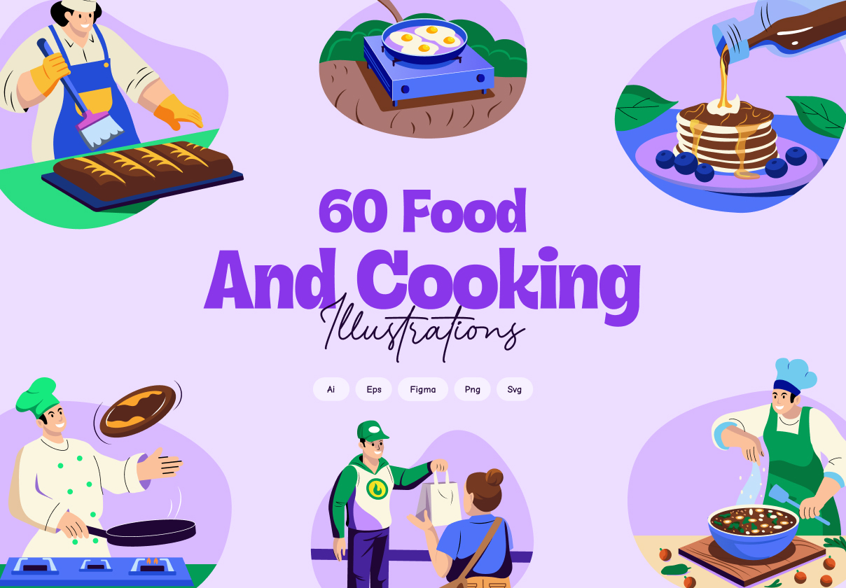 Enhance your culinary themed projects with this cooking and food illustration set, a meticulously designed collection capturing the essence of cooking, ingredients, and culinary techniques. Whether for restaurant branding, food blogs, packaging, or editorial designs, these illustrations provide a sophisticated and engaging visual appeal.