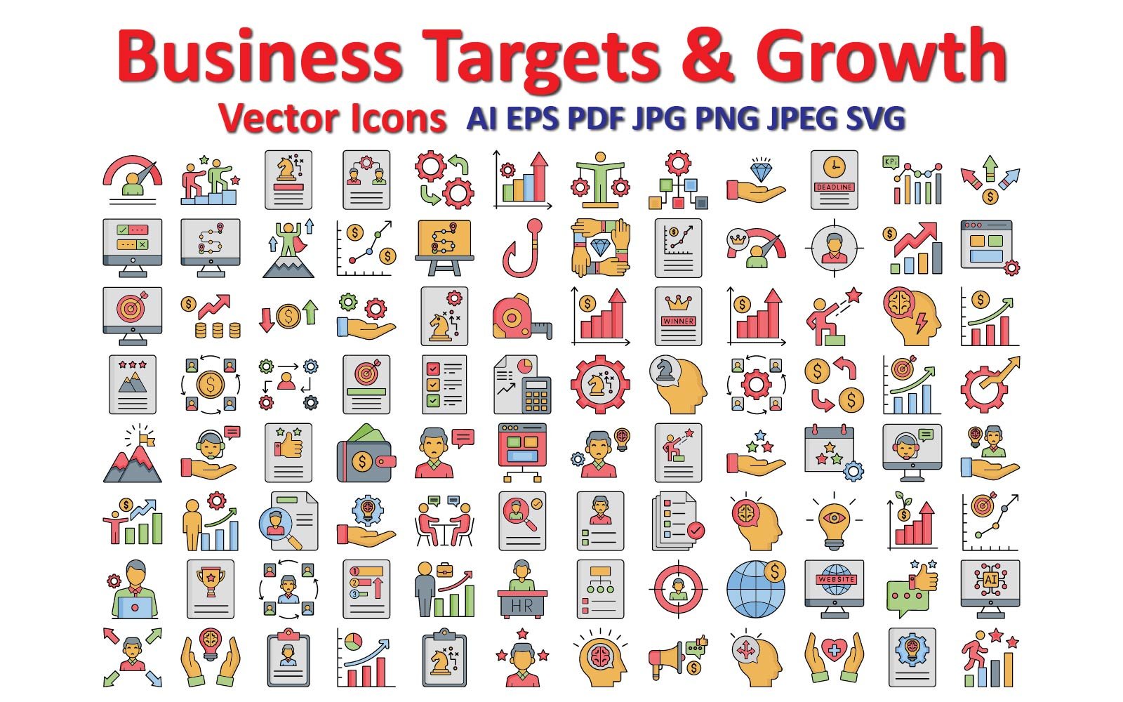 Creative Business Growth: Reaching Targets with Strategic Precision Icon Set
