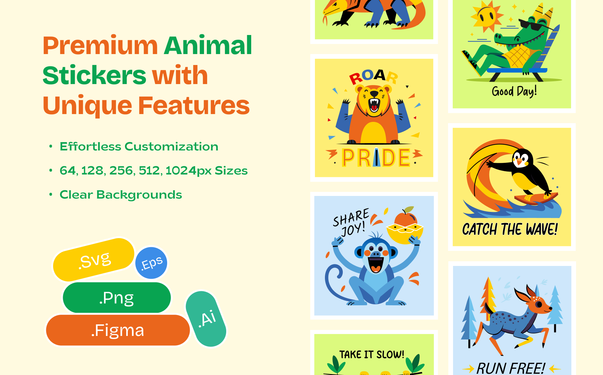 Bring charm and creativity to your designs with our Cute Safari Animal Stickers! Perfect for planners, scrapbooks, digital art, or kids’ projects, these vibrant stickers feature adorable animals from safari, jungle, and fantasy worlds. With versatile file formats, they fit effortlessly into any creative workflow. Whether you’re crafting for fun or work, these stickers add a playful and heart-warming touch.