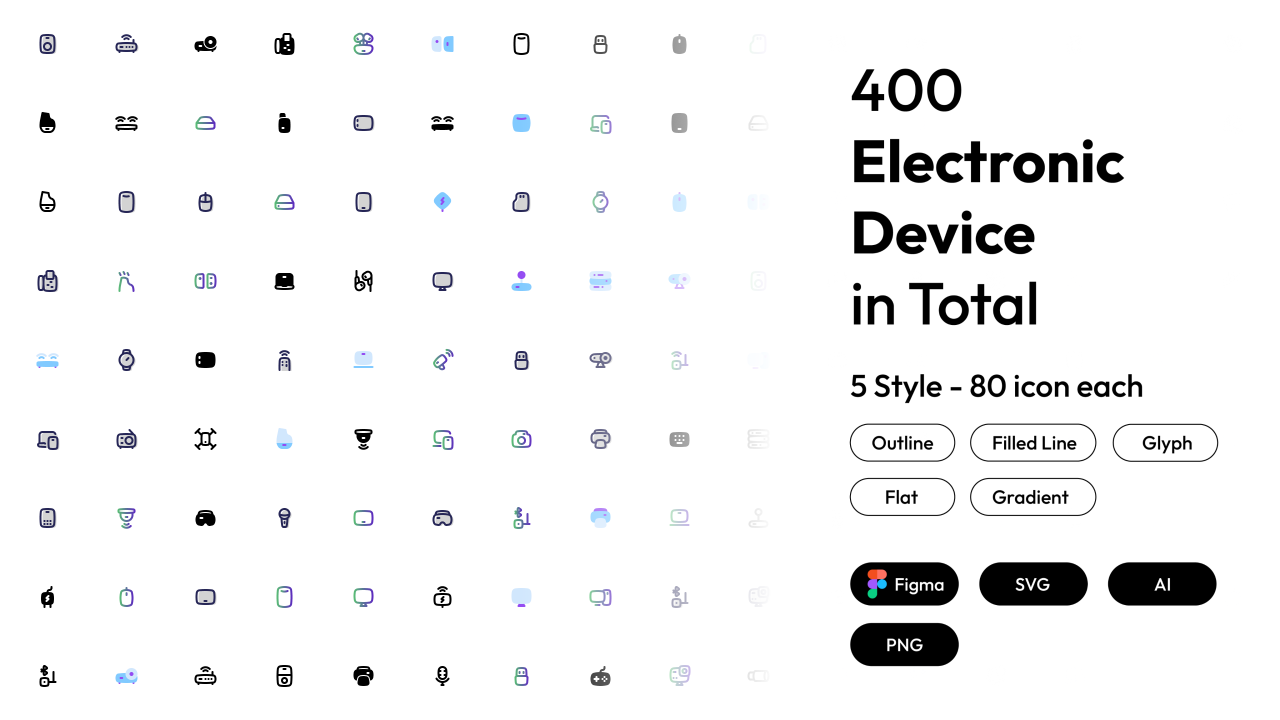 Elevate your design projects with this meticulously crafted set of 400 electronic device icons, designed to bring versatility and visual harmony to your work. This collection is perfect for app development, websites, landing pages, and graphic content creation.