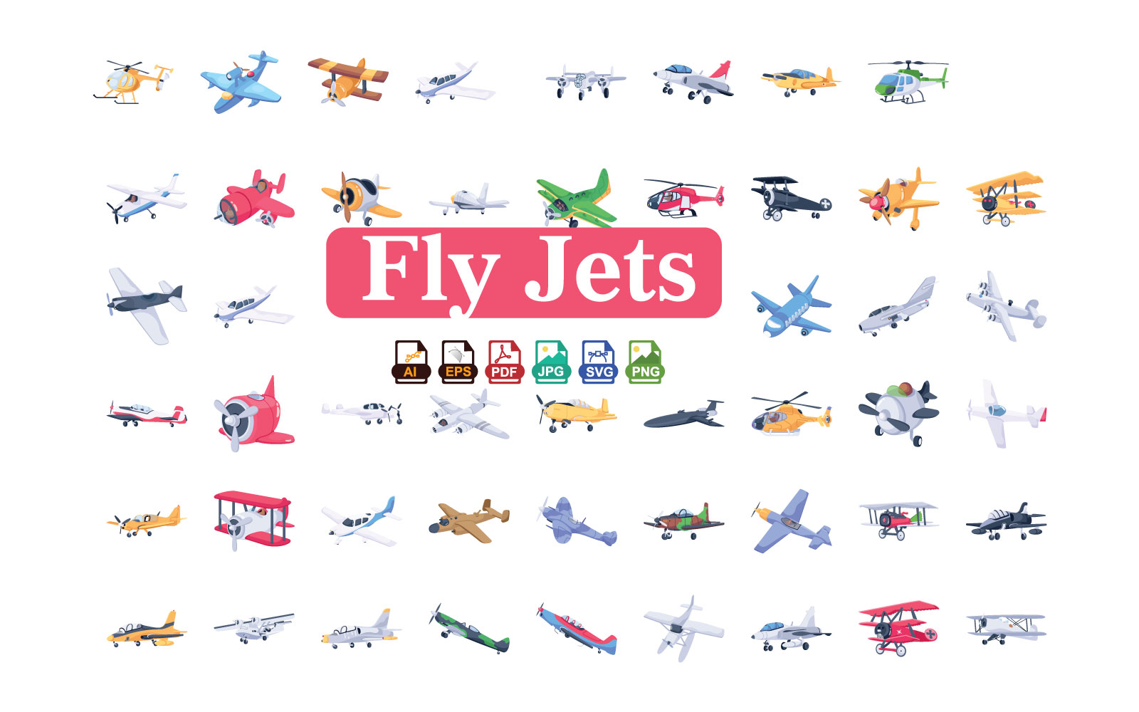 Fly Jets 3D Icons Pack | Airplane, Fighter Jet, Helicopter Icons | Helicaptor | Aviation Vector Clipart , EPS & SVG Files | Digital file