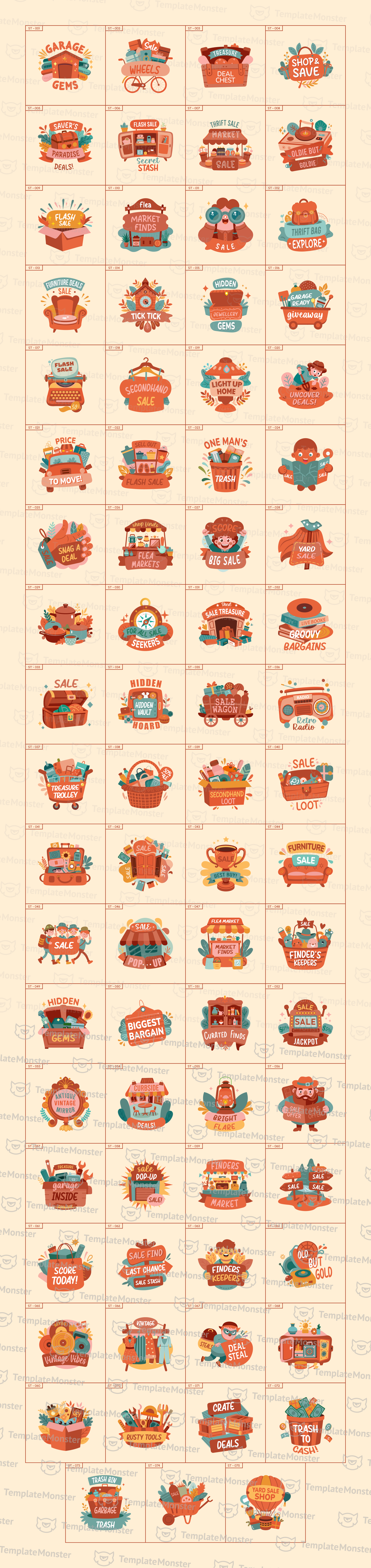 Garage sale stickers are perfect for adding a touch of creativity and organization to your sales events, whether it's a community garage sale, a yard sale, or an online sale. These stickers help attract attention, guide customers, and highlight special deals. Available in various sizes and formats, these stickers are versatile and easy to use in any digital or print application. Great for creating eye-catching signs, social media posts, or flyers to make your sale stand out