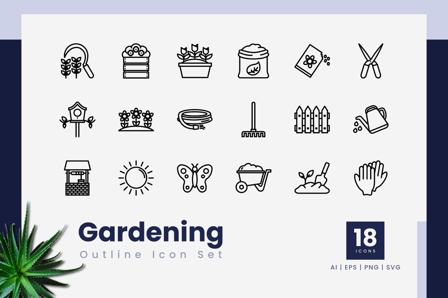 Gardening Outline Icon Set