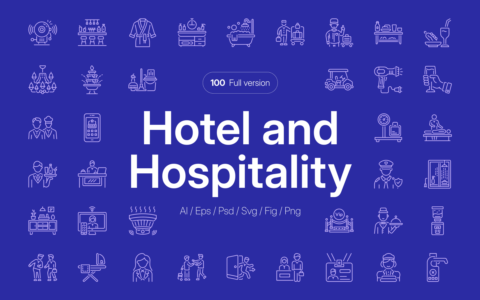 Hotel and hospitality icon set is crafted to bring elegance and clarity to your travel and service themed designs. Whether you are designing a hotel booking app, planning a luxury resort website, or creating brochures for event services, these icons add a touch of professionalism and warmth. Each icon is thoughtfully illustrated to represent real-world hospitality experiences, making them perfect for communicating services clearly and stylishly.