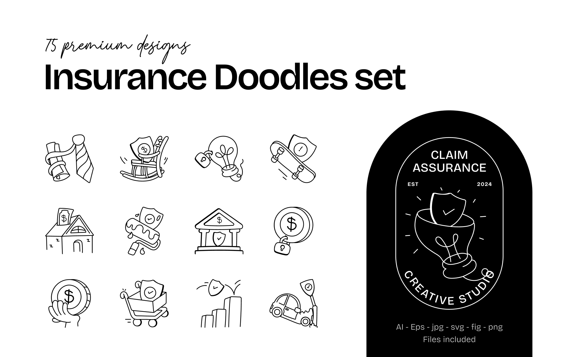 Bring clarity and creativity to your projects with this Insurance Doodles Icon Set. Whether you’re designing for web, presentations, or print, this set covers all types of insurance like car, life, home, travel, and more. With various formats and transparent PNGs, these icons are ready for any platform and adaptable to your style. Ideal for marketing materials, infographics, apps, or websites, each icon offers seamless scalability and easy customization.
