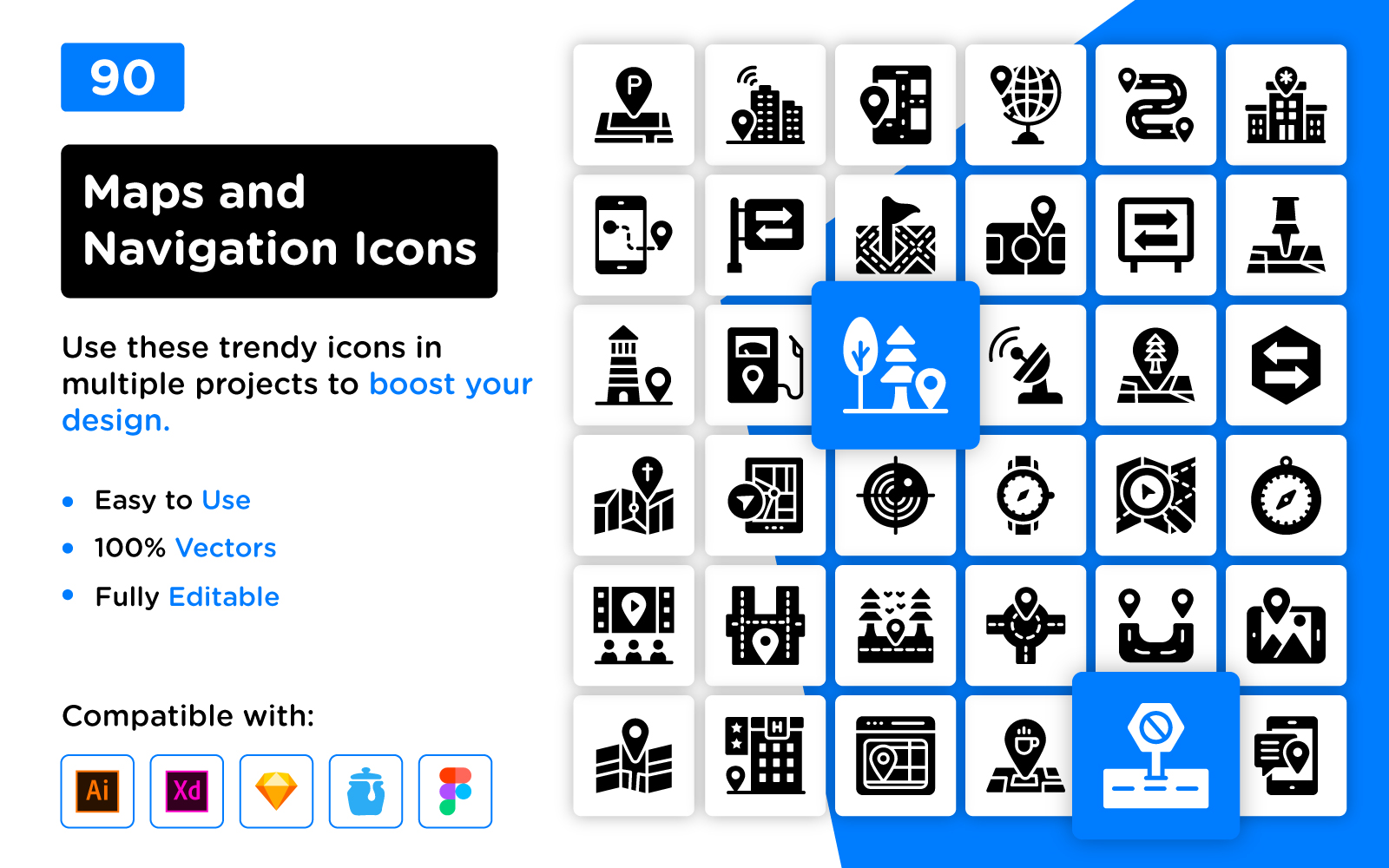 No one likes getting lost while travelling. To overcome this problem we unfolded location maps and navigation designs in glyph icons. These location vectors are designed to guide people and make adventures easier. So hurry up and grab it.