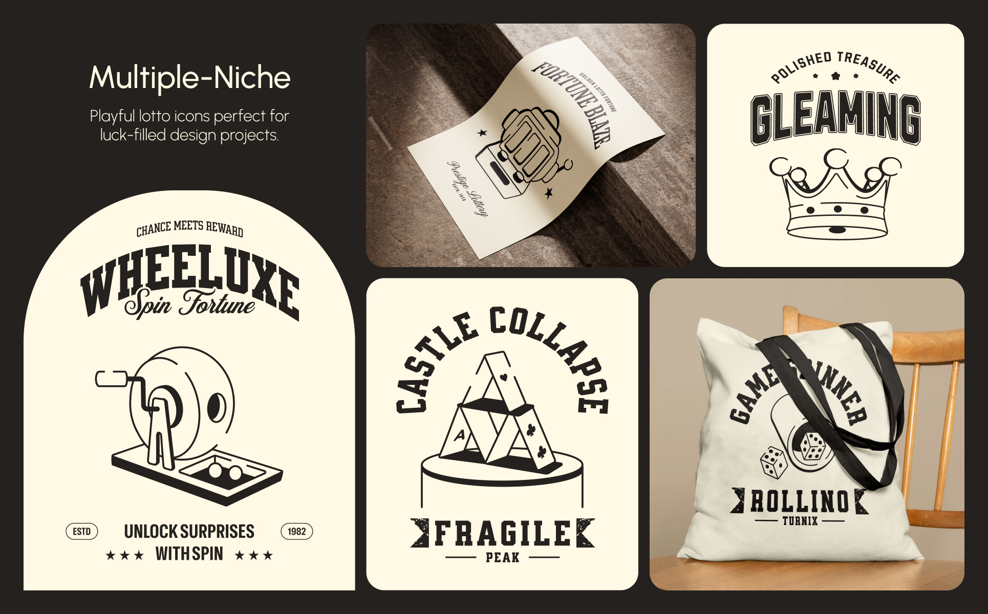- Covers lotto machines, tickets, coins, and jackpots