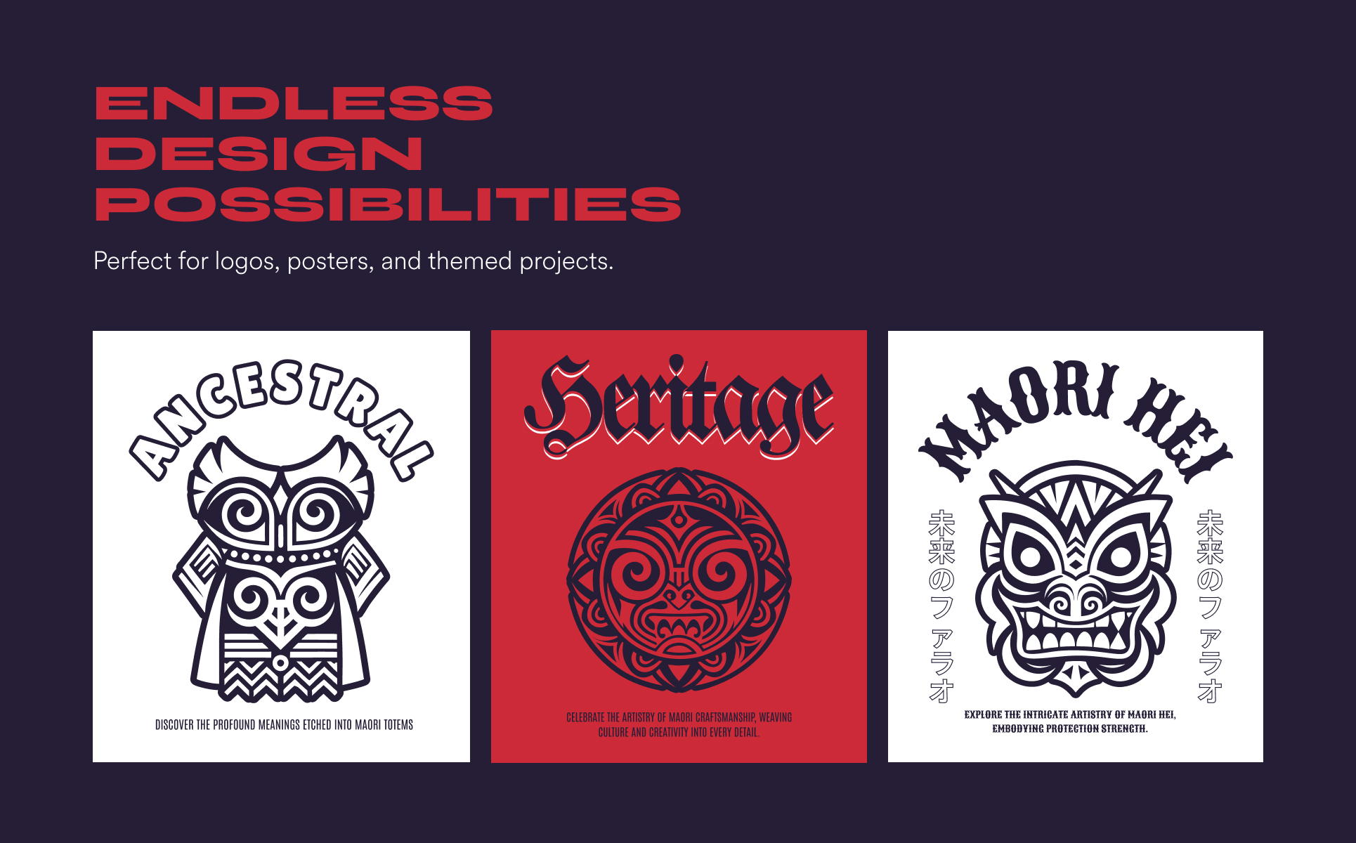 Dive into the world of Maori culture with this professionally crafted collection of Maori art and culture symbols. Designed for creative enthusiasts, these symbols celebrate Maori traditions, spirituality, and artistry, offering endless versatility for your projects. Whether you’re designing a tattoo, branding a campaign, or adding cultural elements to your designs, this pack delivers precision and usability.