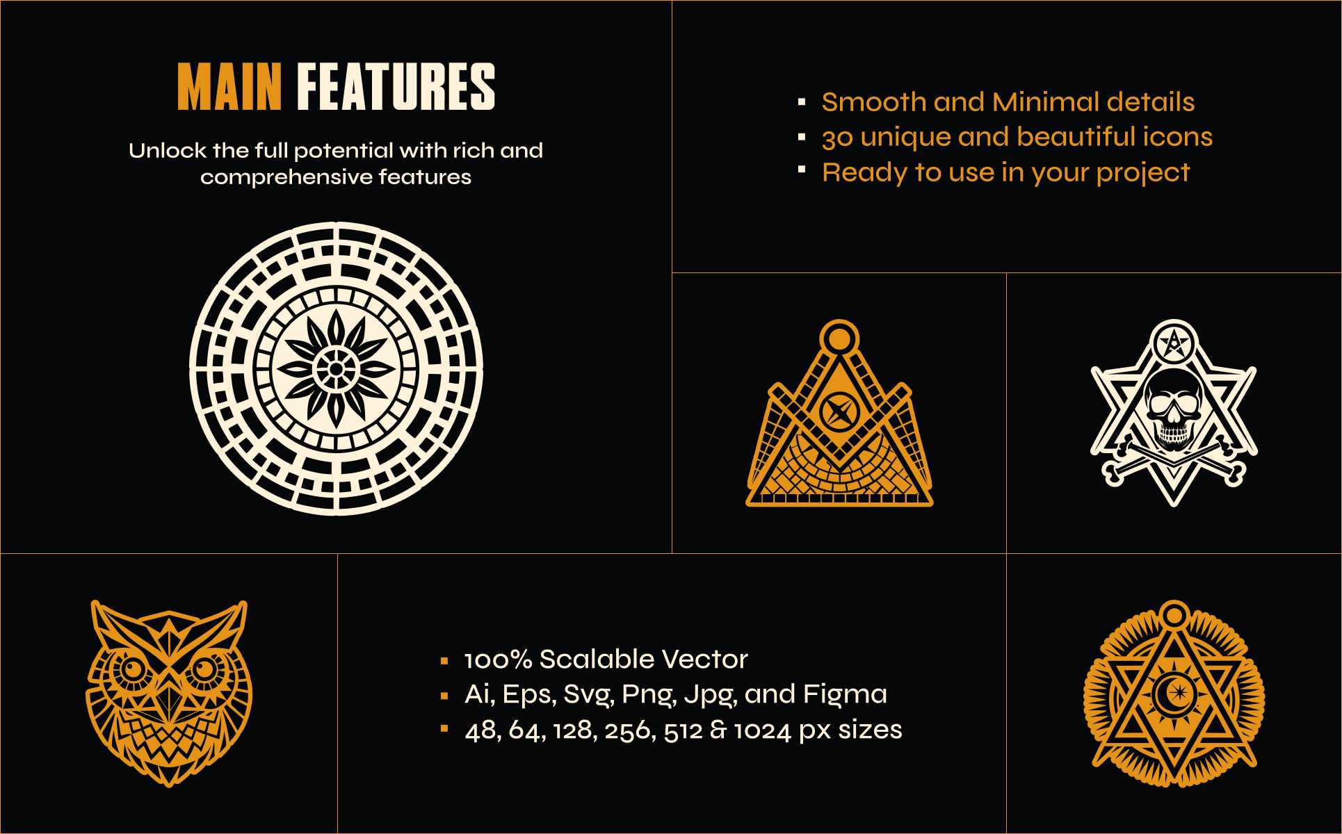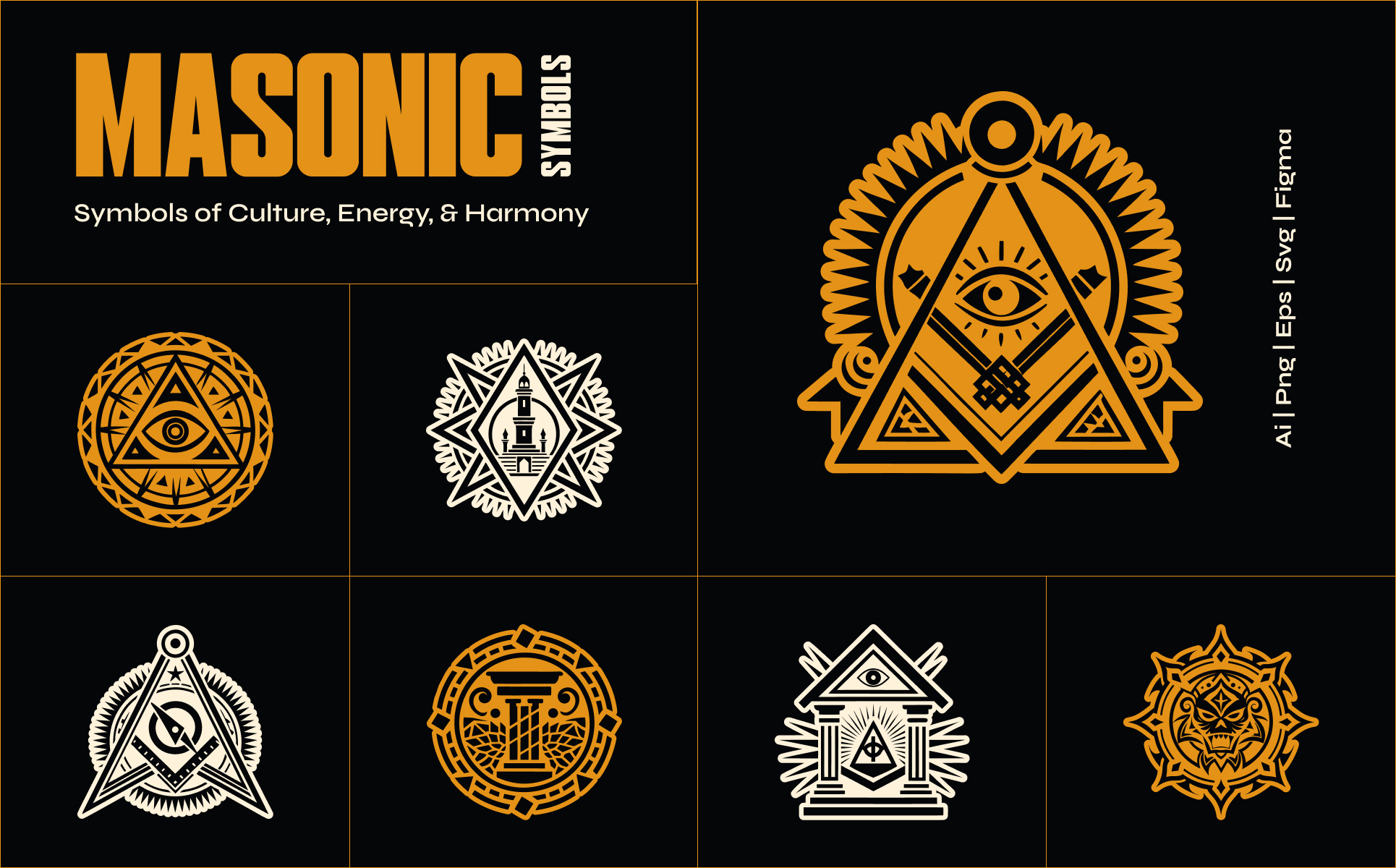 Immerse yourself in the rich heritage of Freemasonry with this meticulously crafted collection of Masonic symbols. Perfect for branding, merchandise, or digital artwork, these timeless emblems infuse your projects with history, mystery, and significance. Elevate your designs with iconic symbols of wisdom, strength, and fraternity.