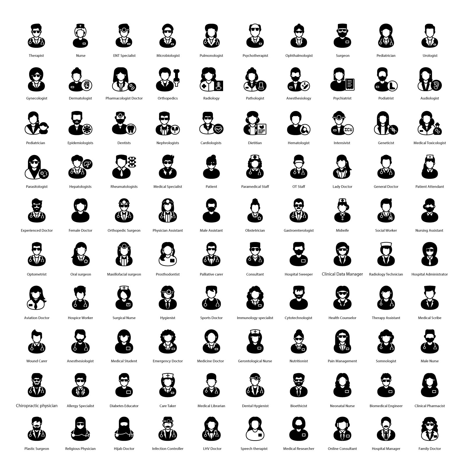 Medical Staff Avatars Glyph Icons Pack Icon Set