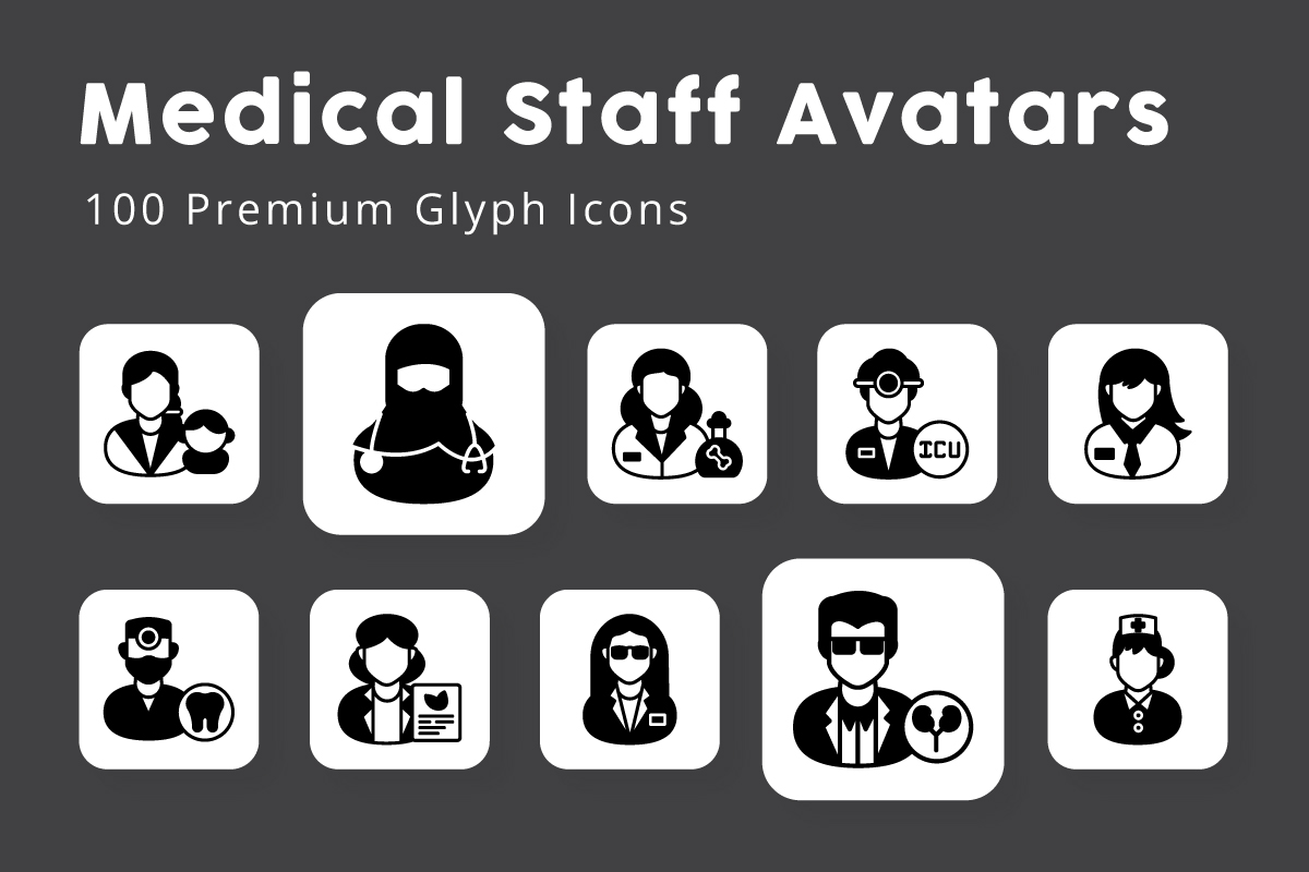 Medical Staff Avatars Glyph Icons Pack Icon Set