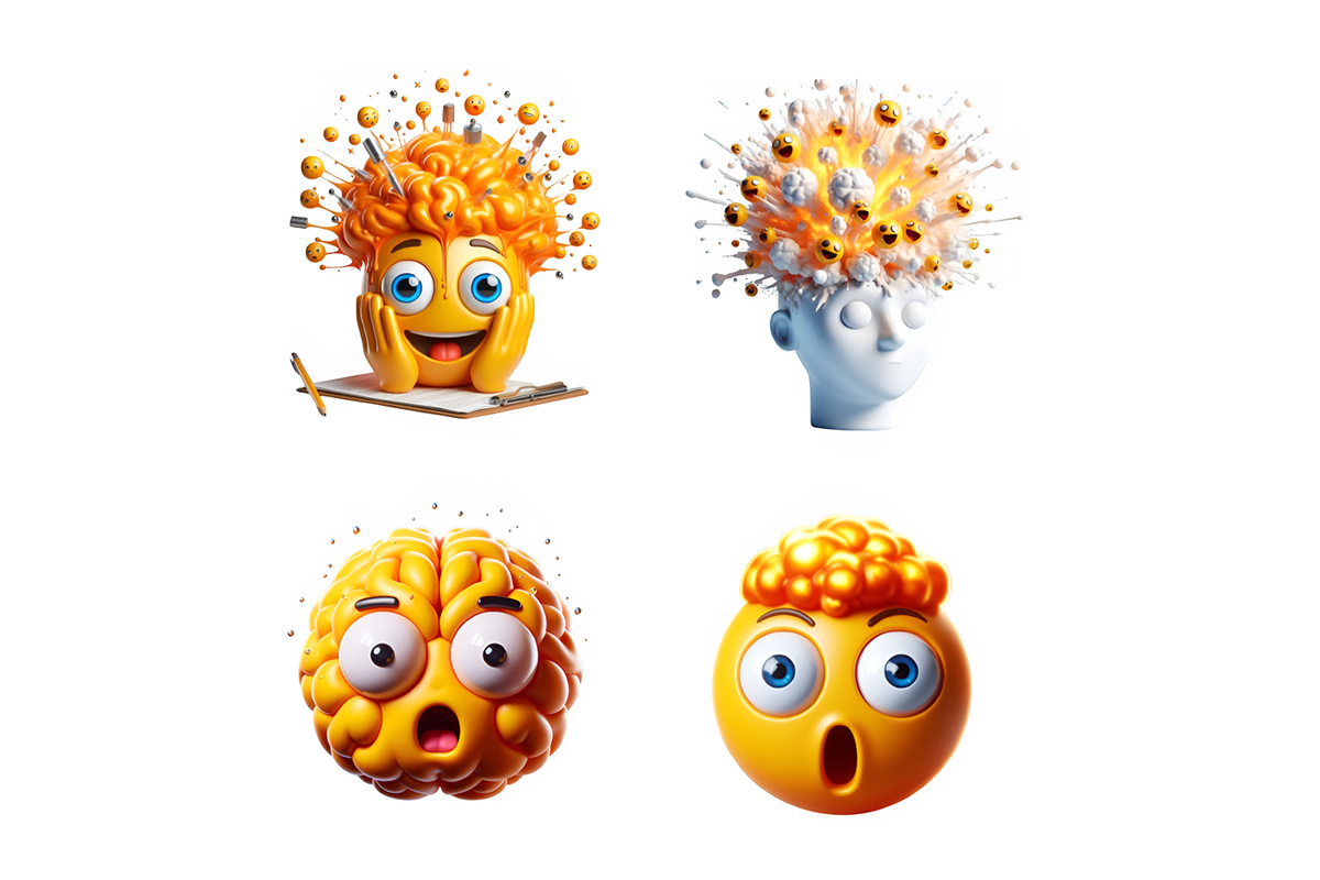Mind blown emoji isolated. 3D rendering. 3D emojis on transparent background.