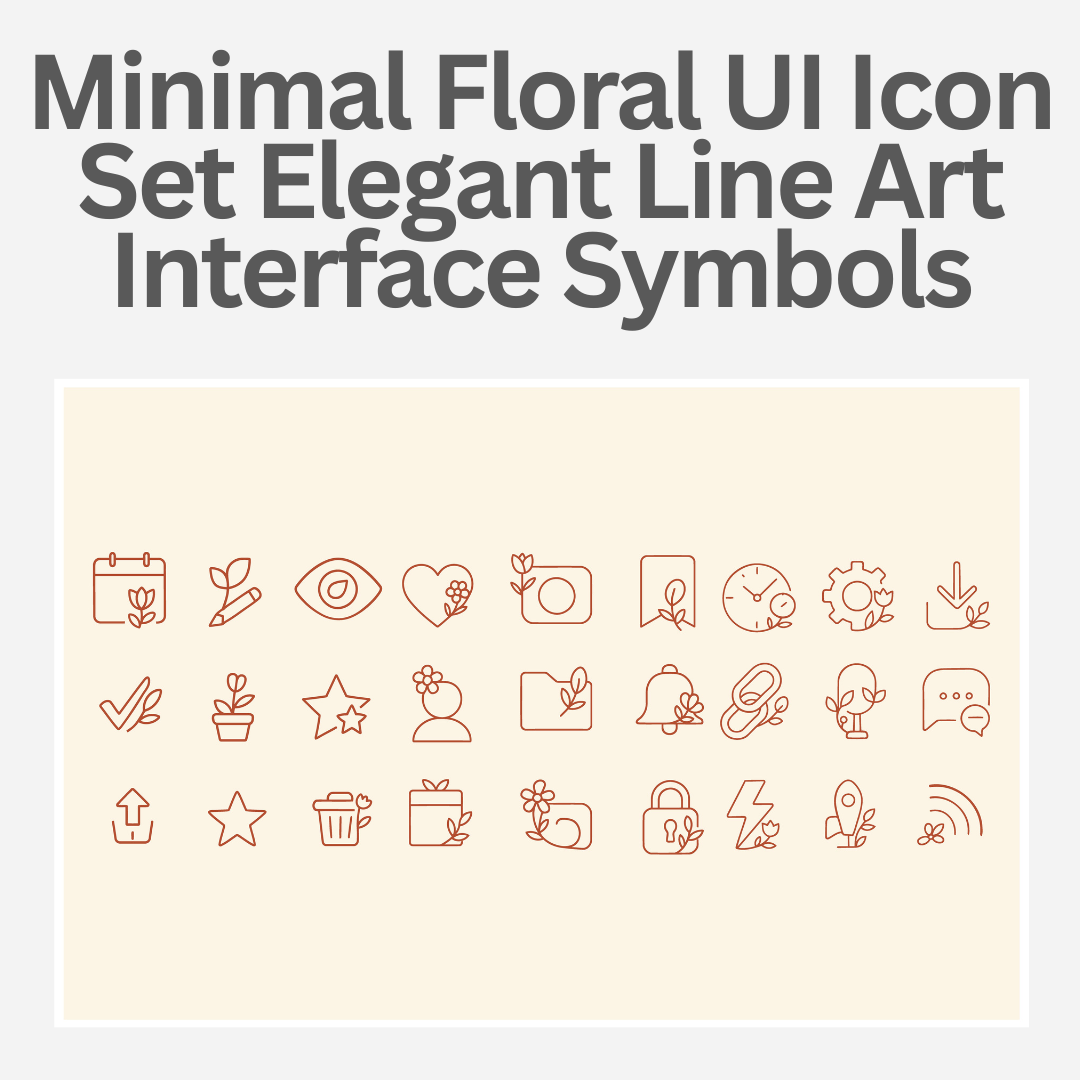 Minimal Floral UI Icon Set Elegant Line Art Interface Symbols with Botanical Accents