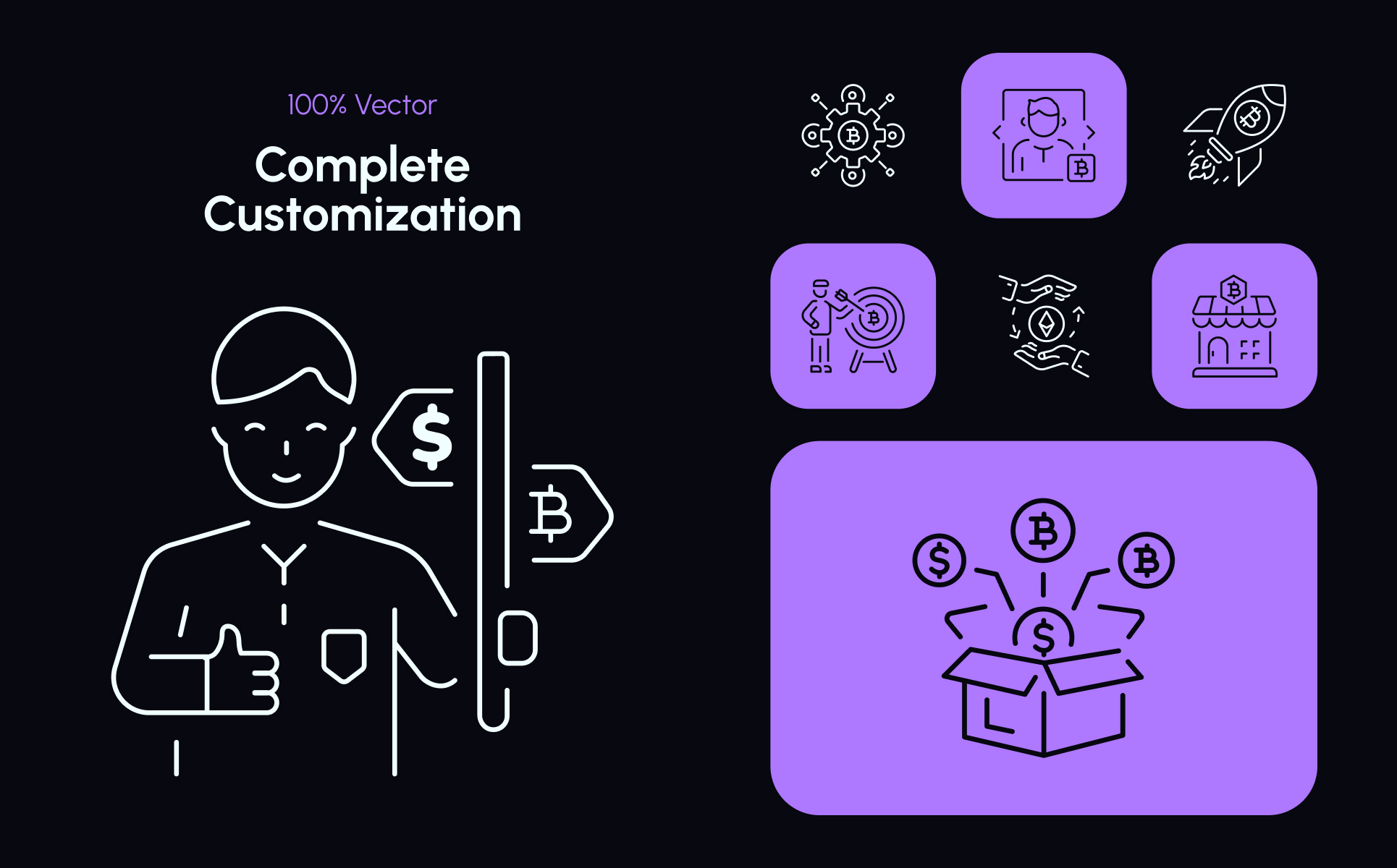 This Crypto Icon Art Set is designed to make your creative projects shine, whether you’re working on a fintech app, crypto exchange, blockchain website, or digital wallet design. These icons are ready to drop into your workflow for pixel-perfect results. Clean lines, modern style, and clear visuals ensure your crypto message comes through loud and clear, wherever you use them.