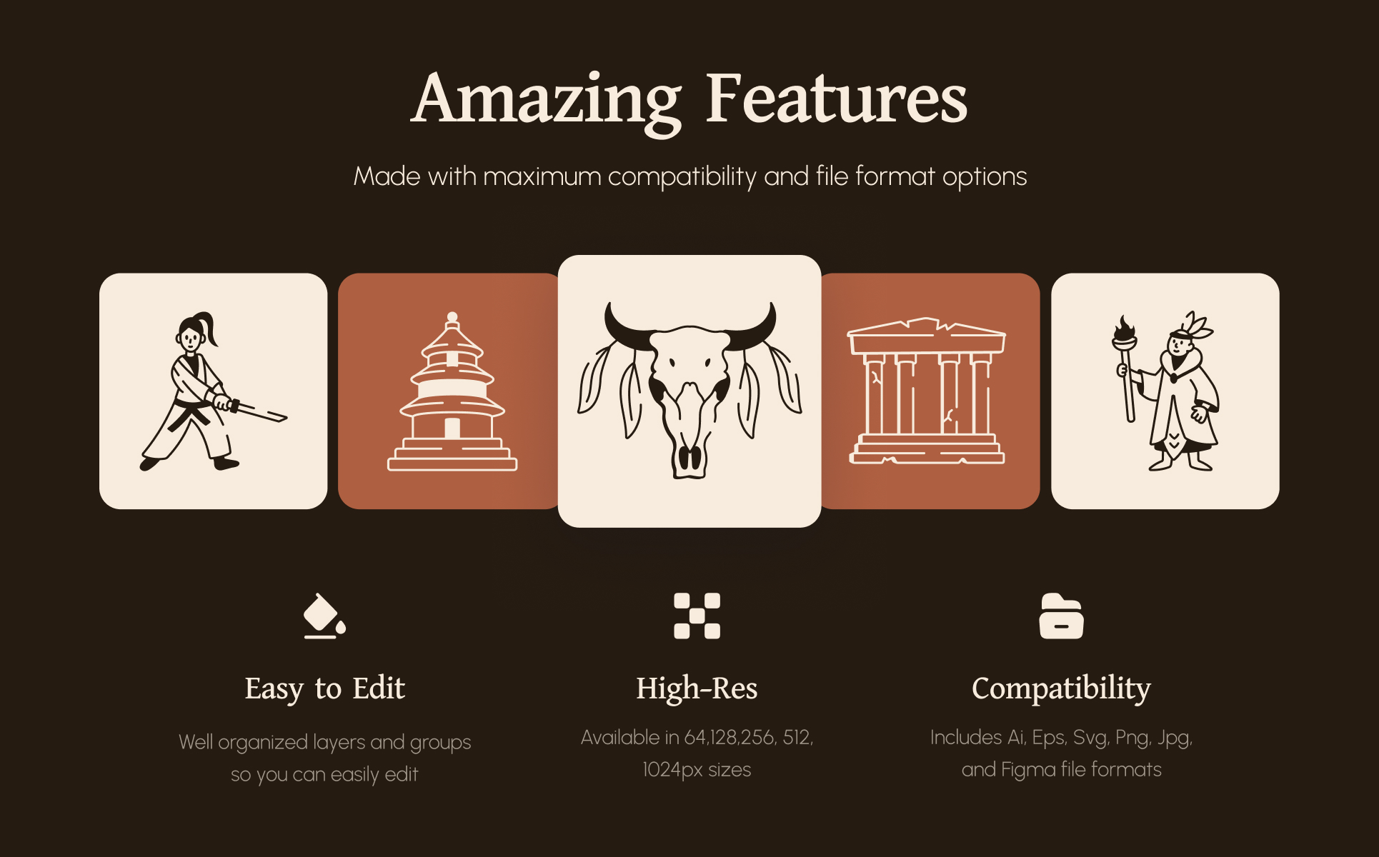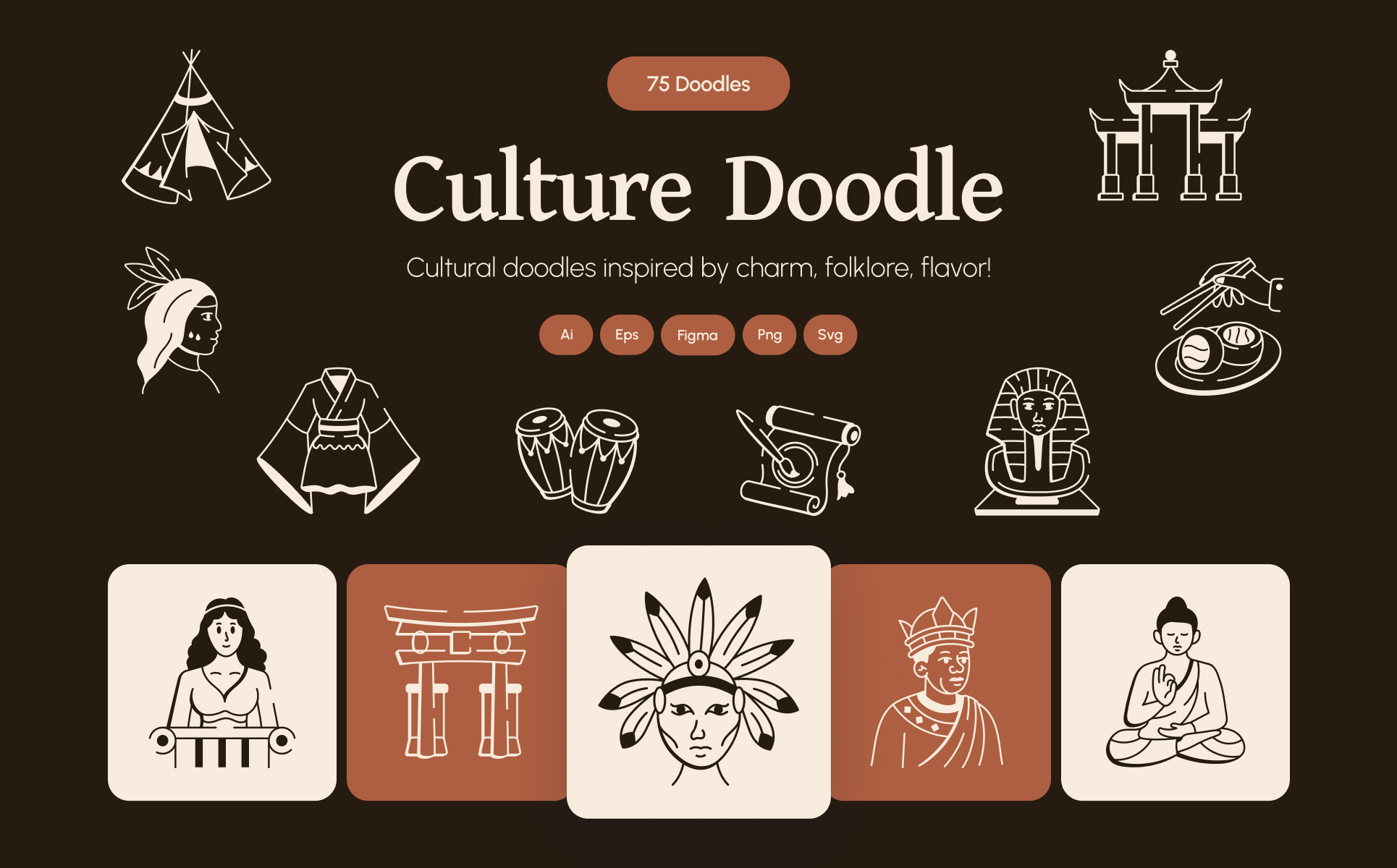 This Culture Doodle Icon Set brings a joyful blend of traditions, landmarks, and cultural elements from across the globe into your designs. Whether you're working on educational content, travel blogs, heritage projects, or global campaigns, these playful hand drawn icons add character and cultural depth instantly. Ideal for designers, educators, and content creators aiming to make their visuals culturally rich and relatable.