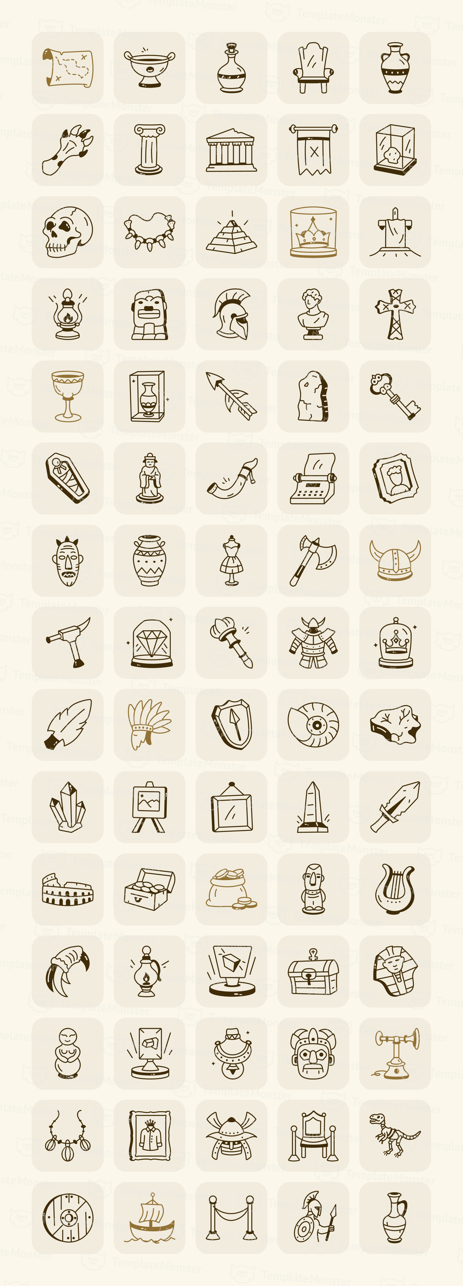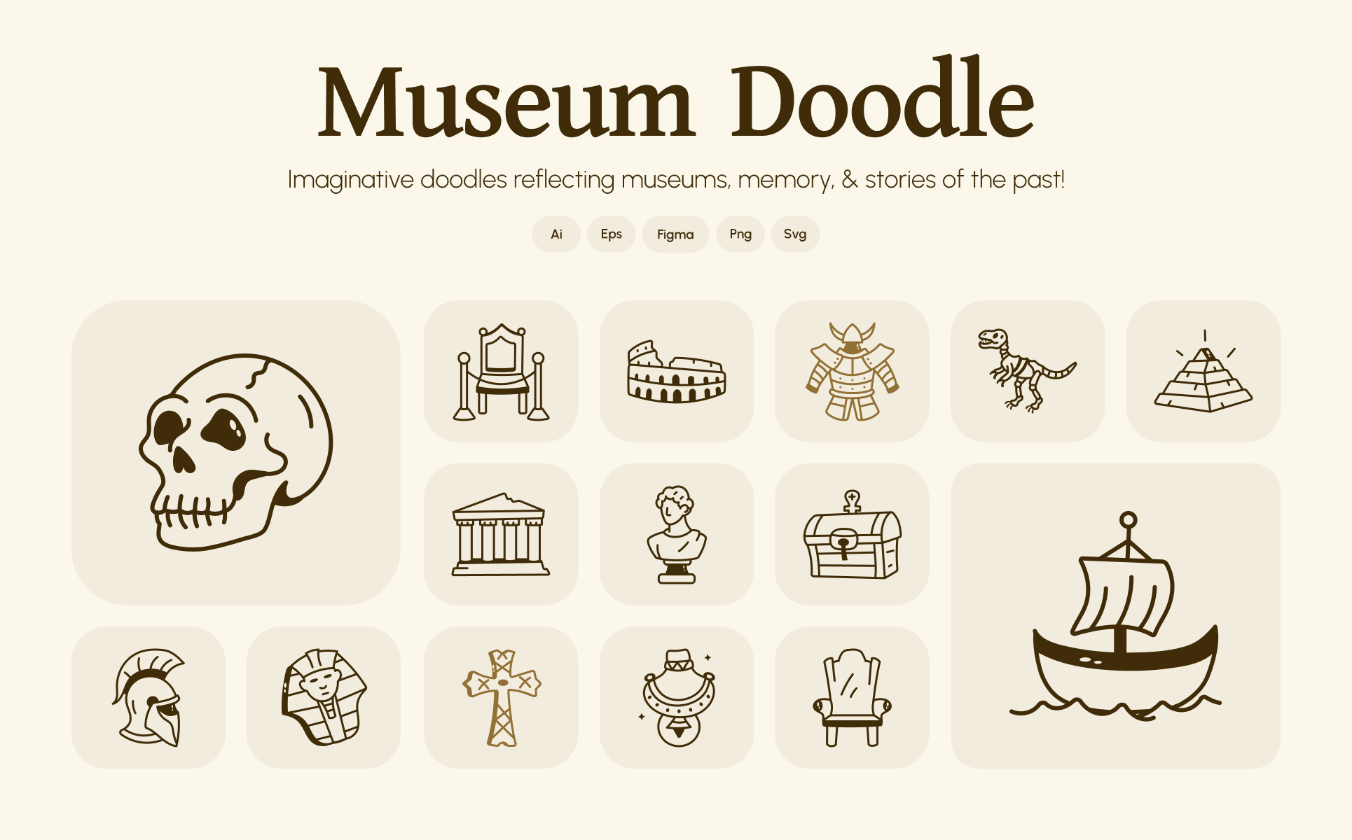 Bring culture and history to life with the Doodle Museum Icon Set! A clean, professional collection of museum-themed line art. Perfect for presentations, educational content, websites, and creative branding, these icons make historical and cultural topics feel engaging and visually appealing. With multiple sizes and formats, you can easily integrate them into any project for a polished, modern look.