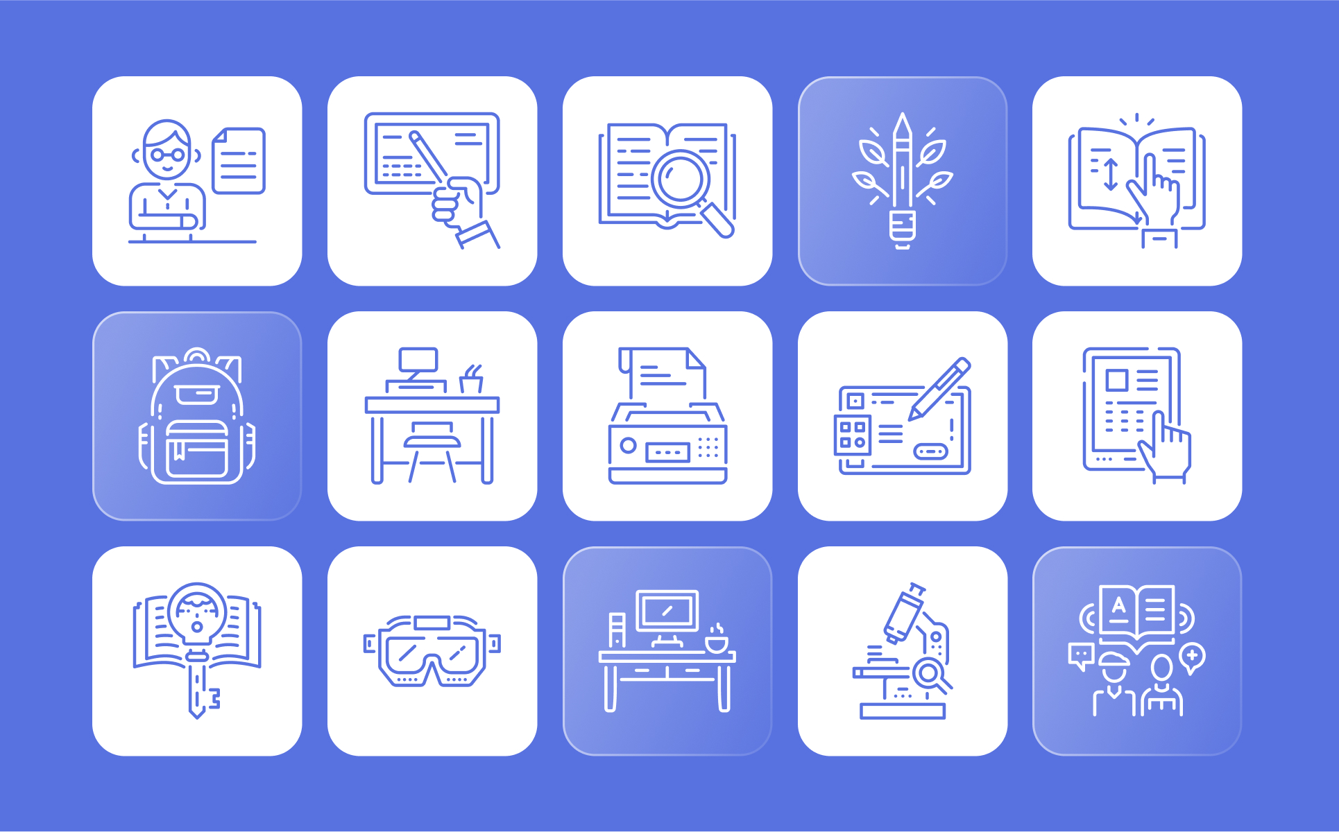 - Covers a variety of education themes: online learning, school tools, classroom setups.