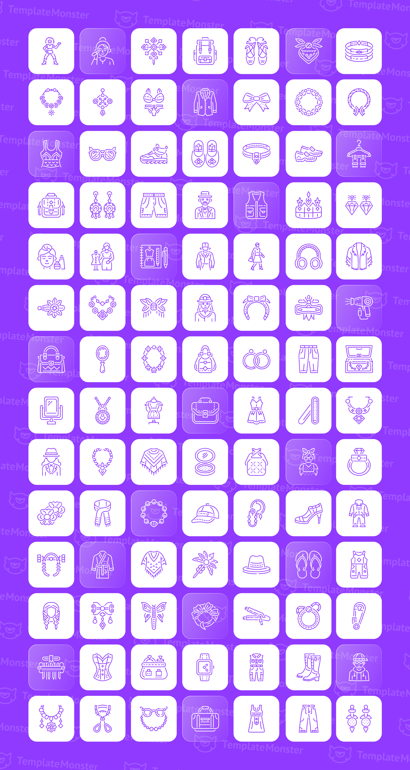 - Stylish and Modern: Trendy icons for fashion, accessories, and apparel.