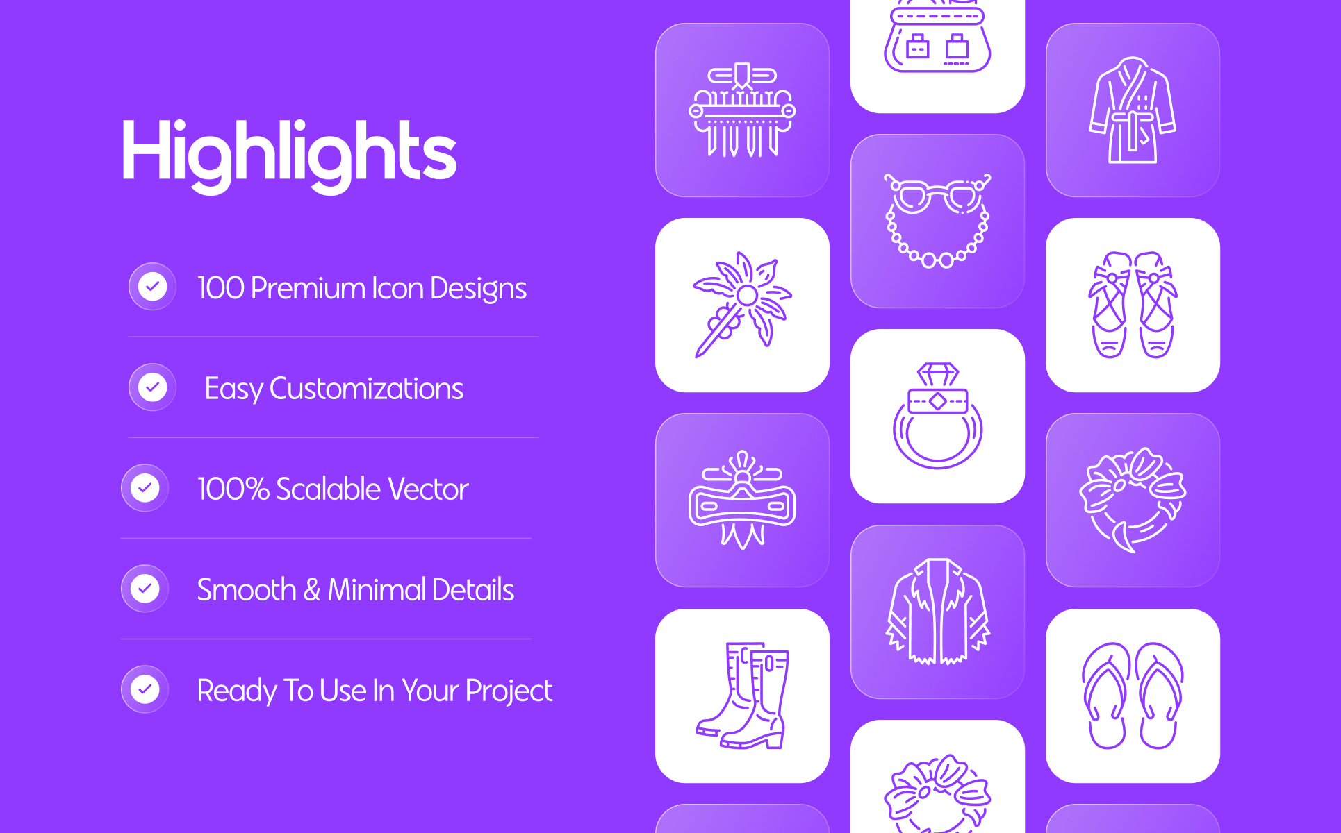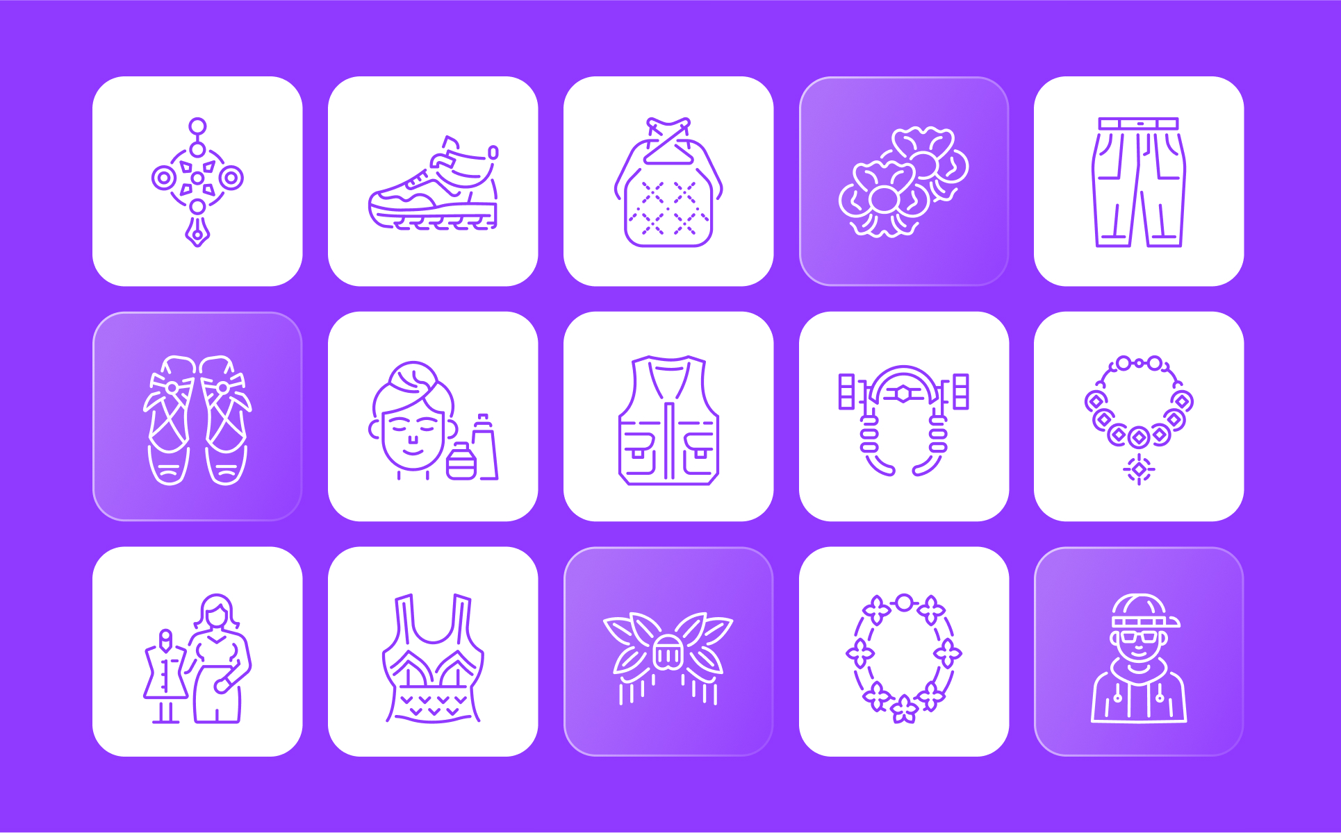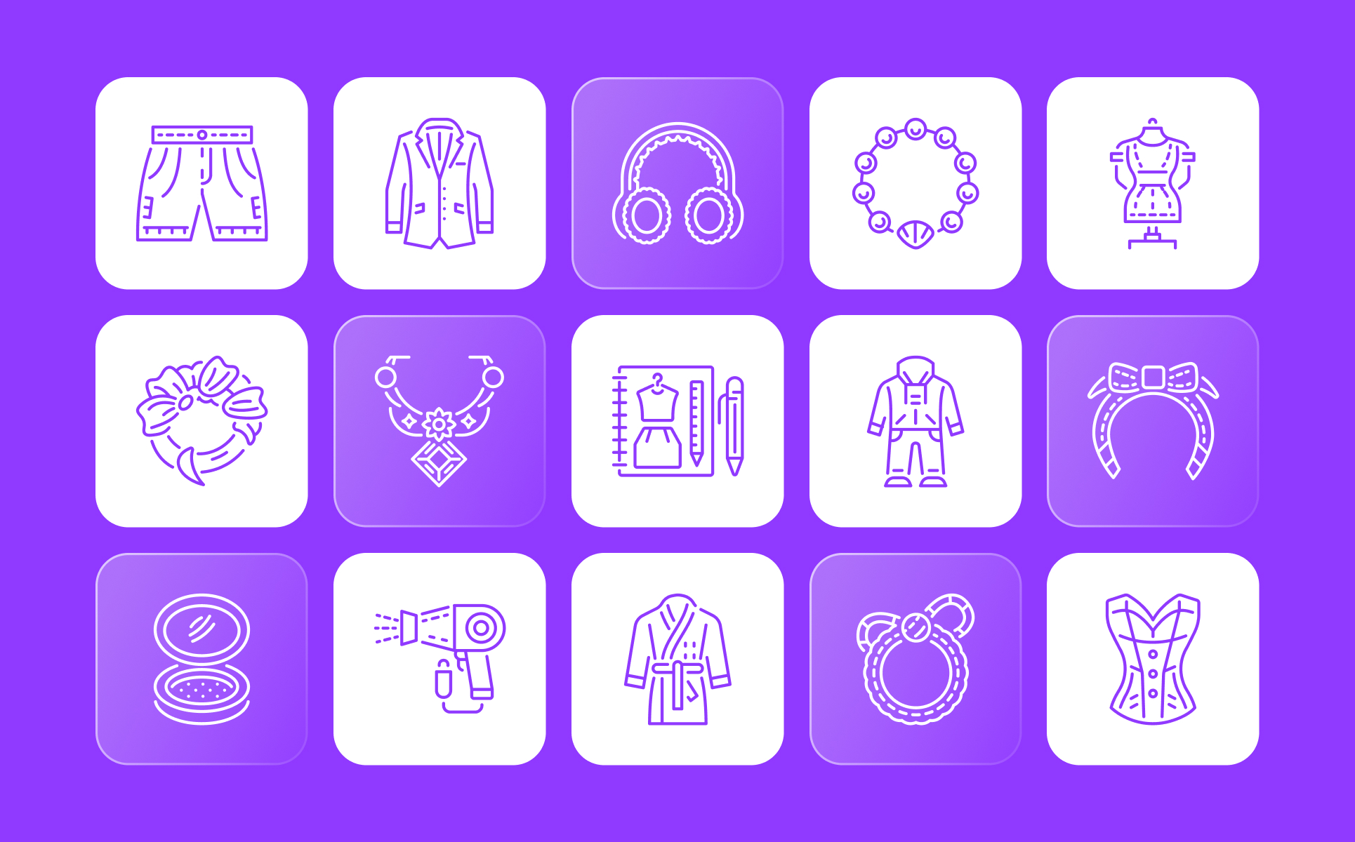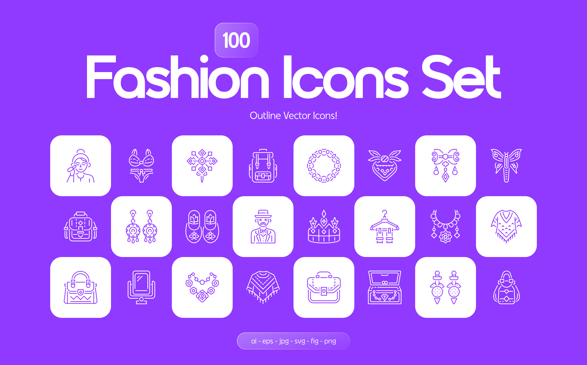 - Stylish and Modern: Trendy icons for fashion, accessories, and apparel.