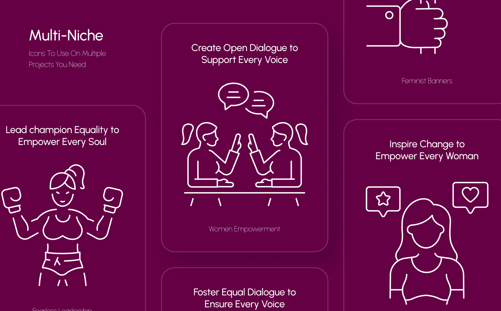 Celebrate feminism and womens empowerment with this feminist icons set These bold and inspiring symbols are perfect for activism, branding, and creative projects. Whether you are designing for protests, awareness campaigns, social media, or personal expression, these icons bring a strong and meaningful message. Use them to amplify your voice, spark conversations, and create visuals that stand for justice and equality.