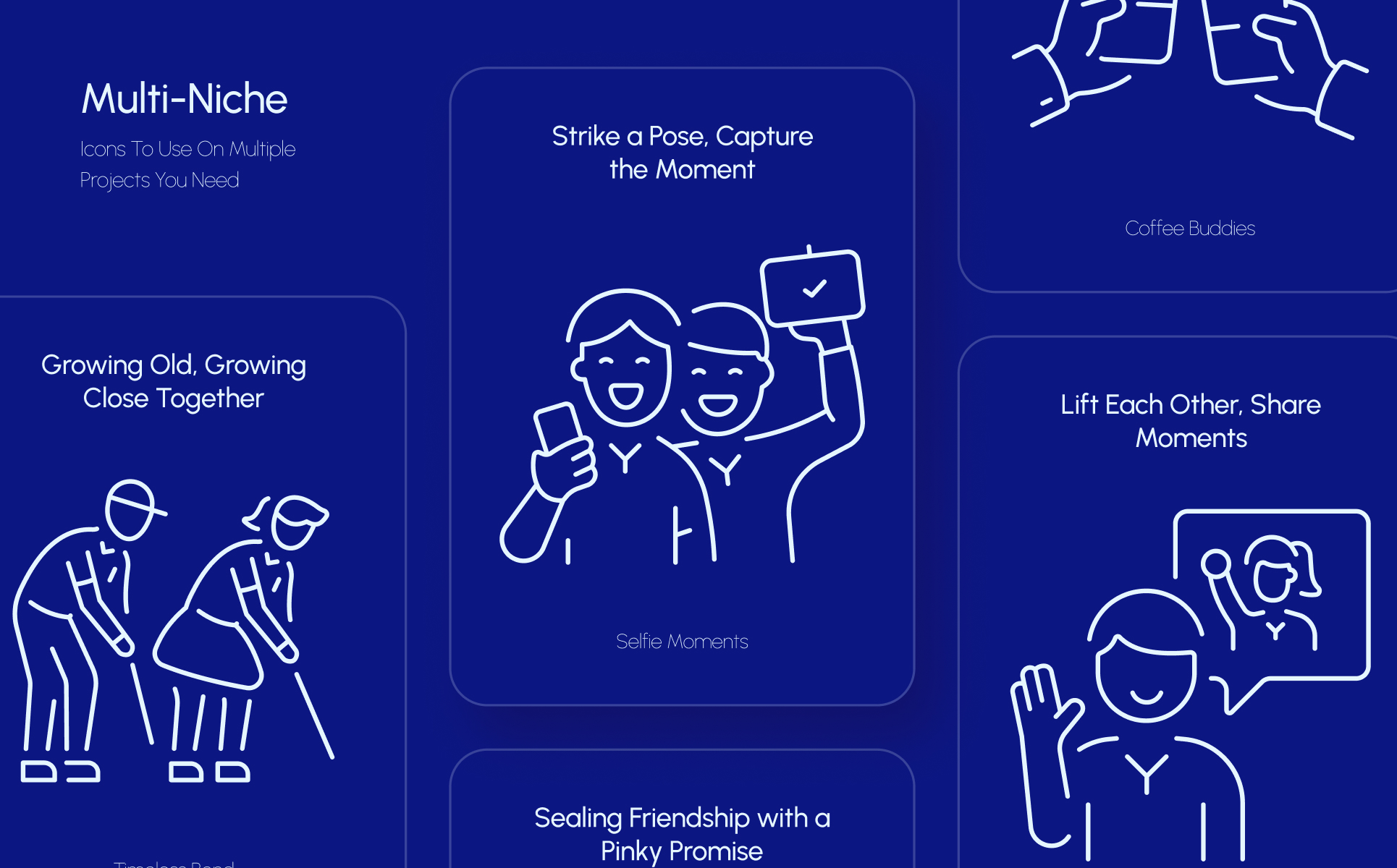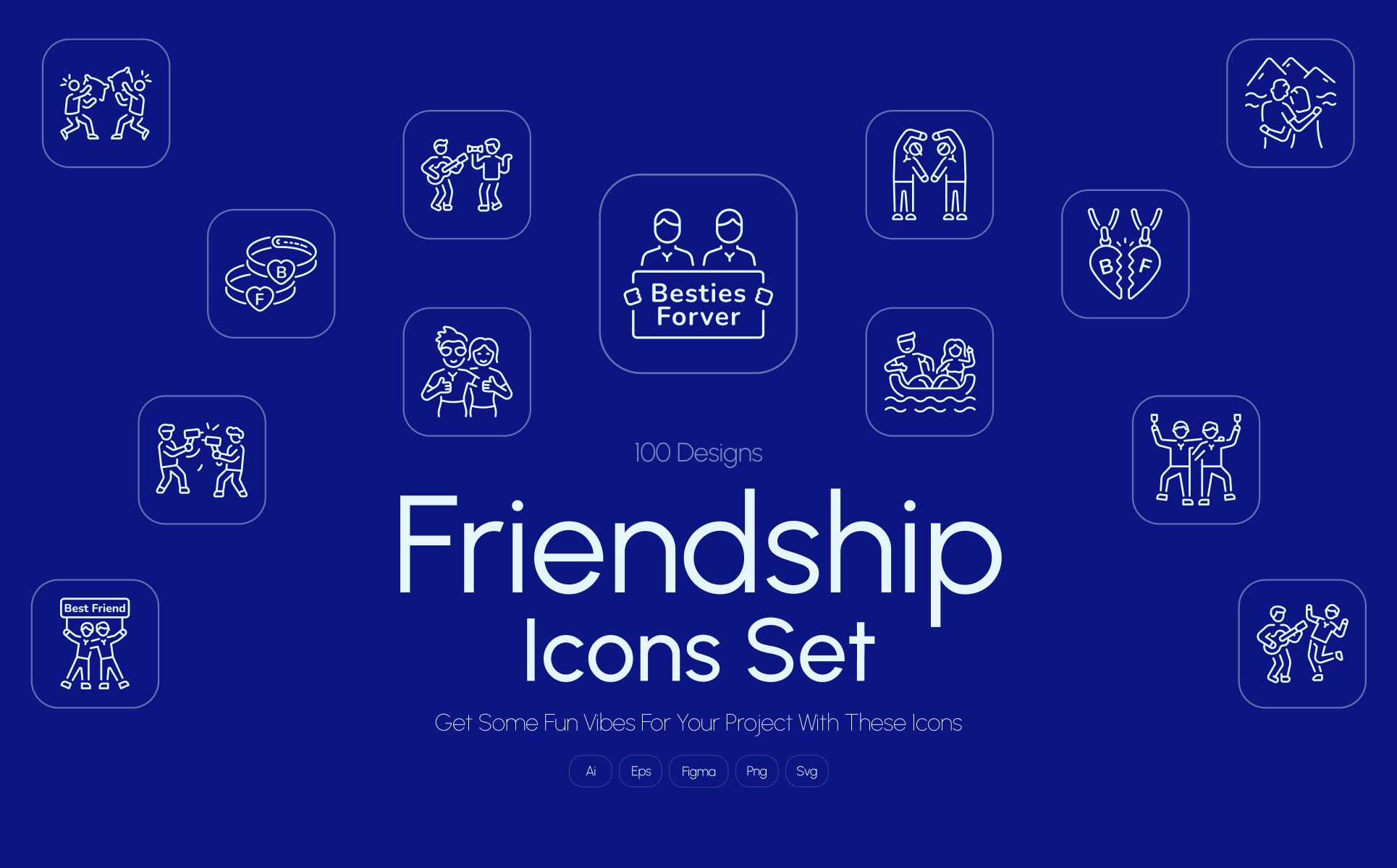 Friendship is all about laughter, connection, and unforgettable moments. This Friendship Icon Collection brings those feelings to life Whether you are designing for social fully illustrated icons and media, branding, invitations, or creative projects, these bring warmth and personality to every design. Perfect for celebrating best friends, unity, and togetherness, this collection helps you tell heartfelt stories with a touch of creativity. Spread positivity and make your designs shine with the essence of true friendship!