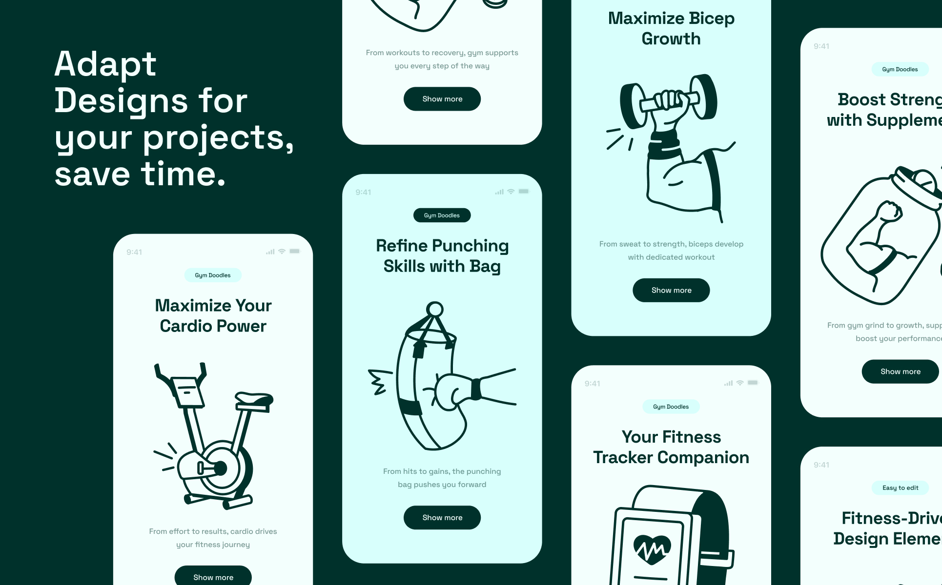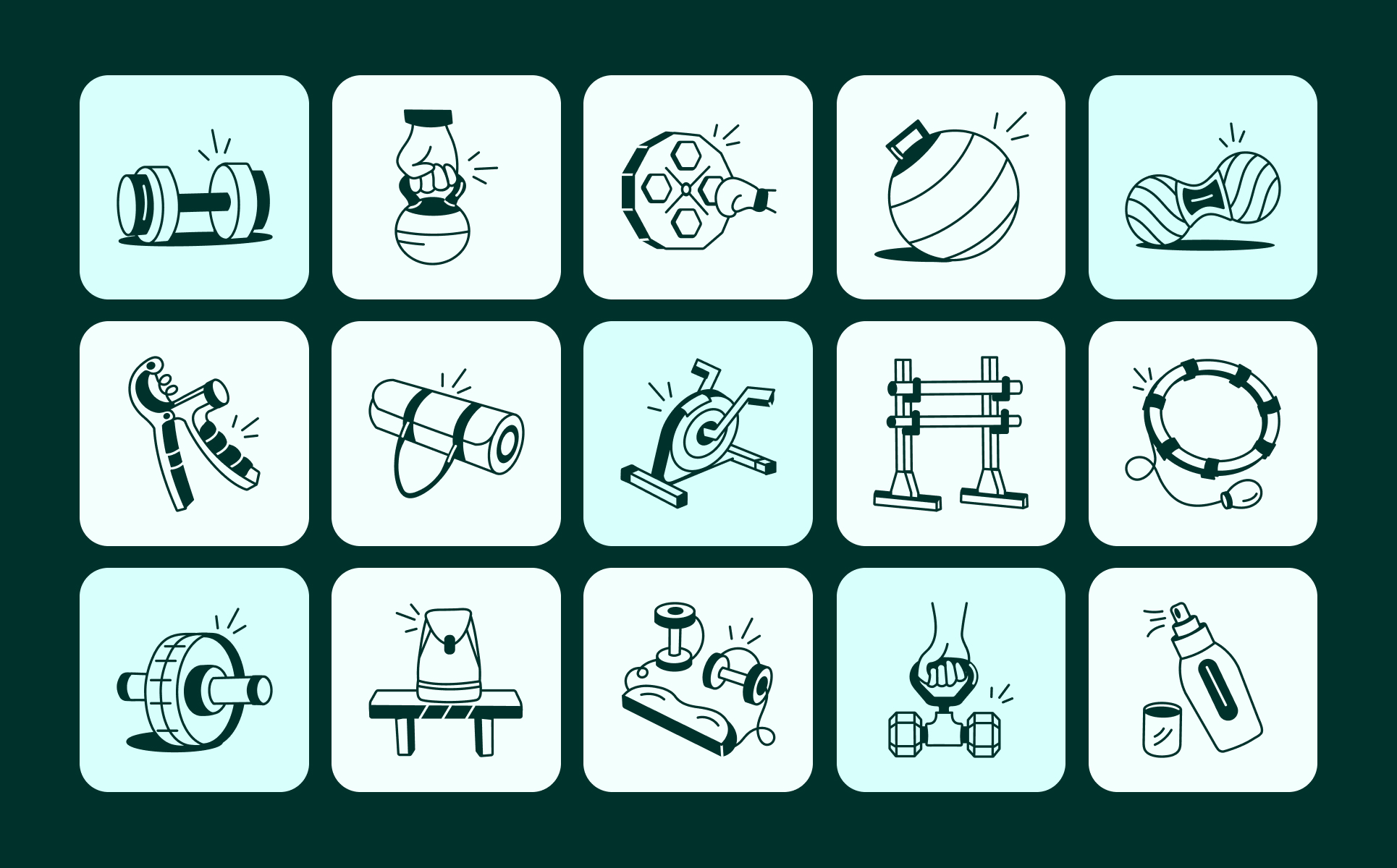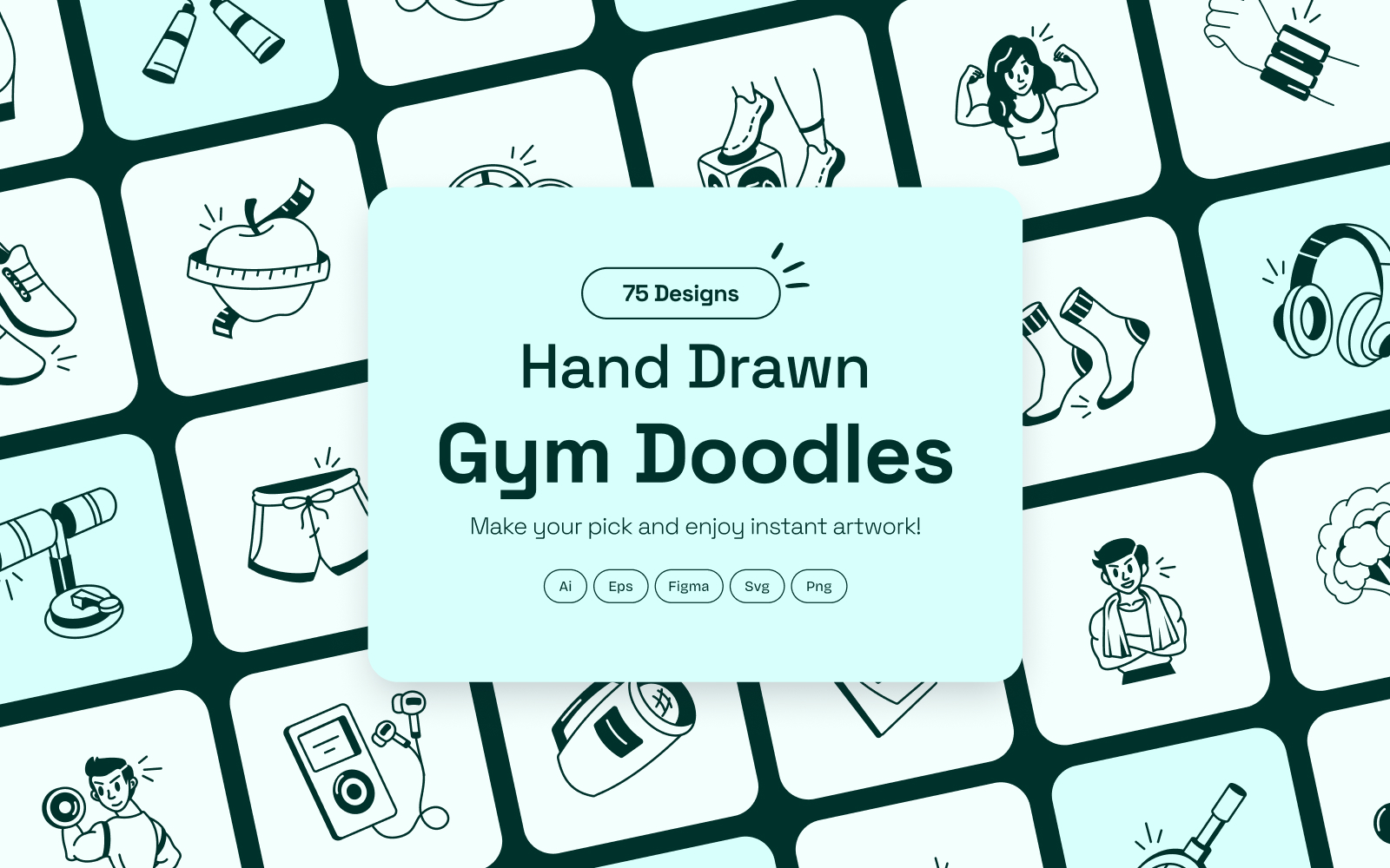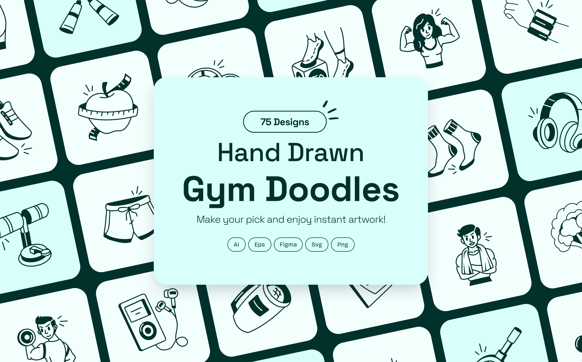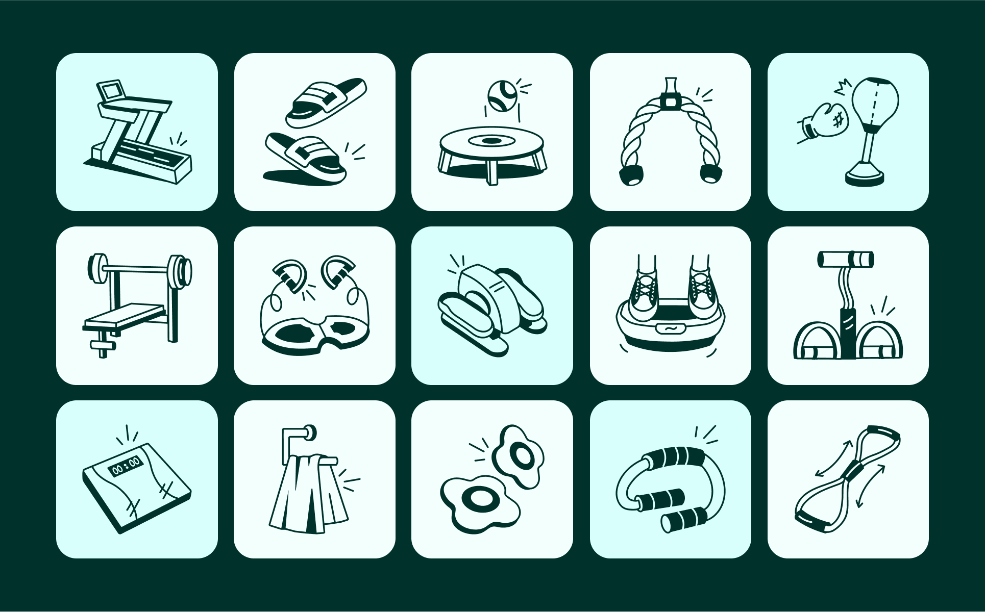 Make your fitness themed designs stand out with this gym doodle icons pack! Whether you're designing workout apps, gym posters, fitness planners, or social media content, these fun and energetic doodles will add a fresh and engaging touch. Perfect for personal trainers, fitness bloggers, and gym owners looking to add a creative edge to their visuals.