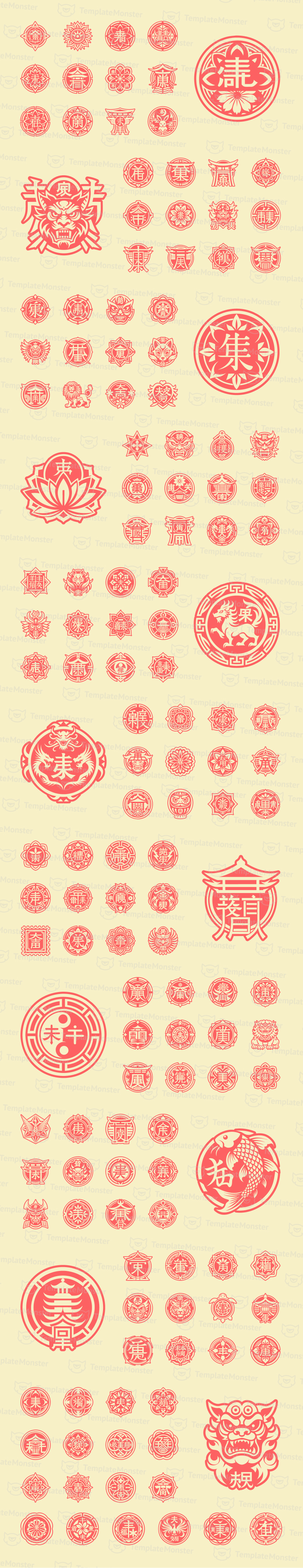 Modern Japanese Kanji Symbols Icon Set
