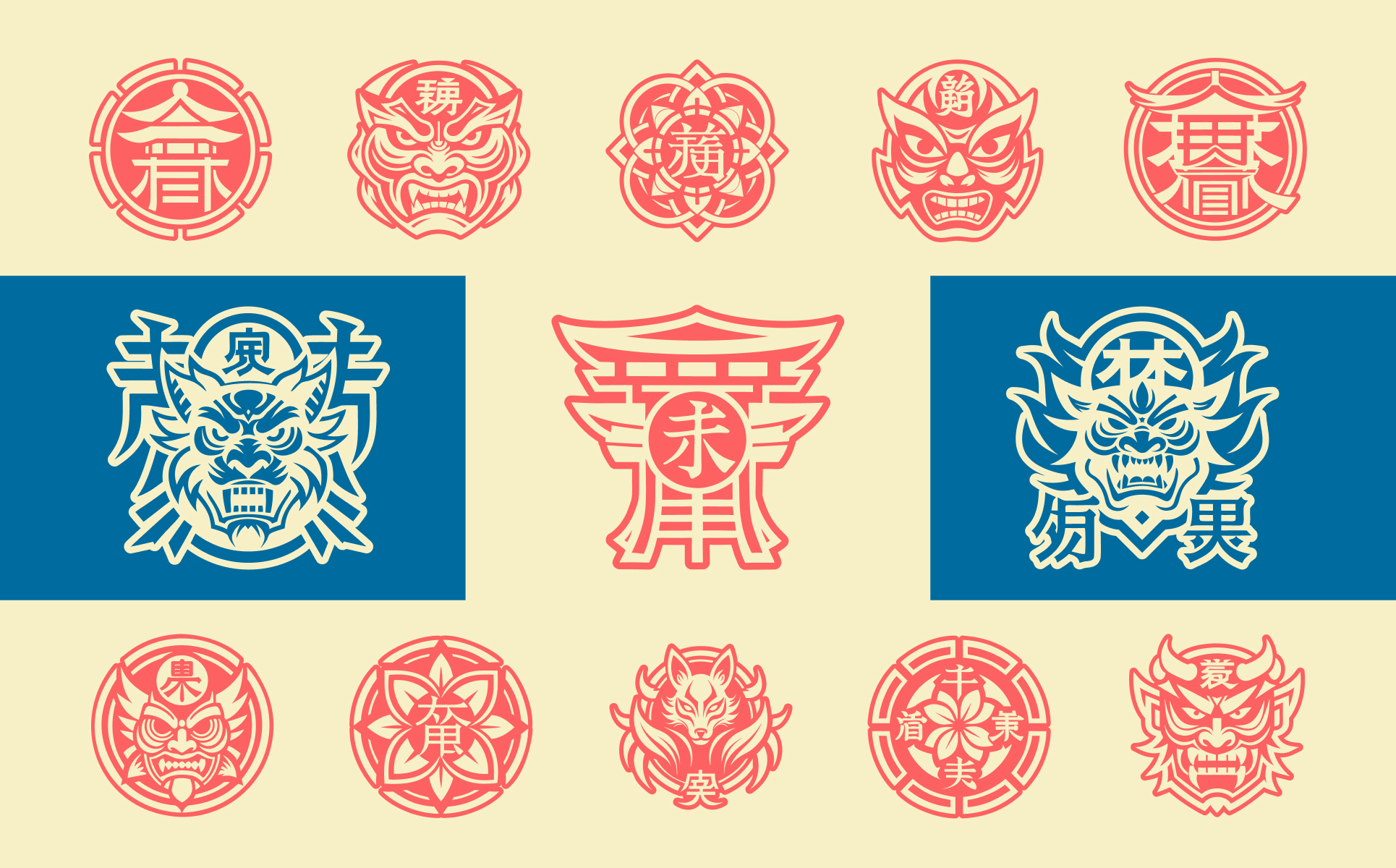 Modern Japanese Kanji Symbols Icon Set