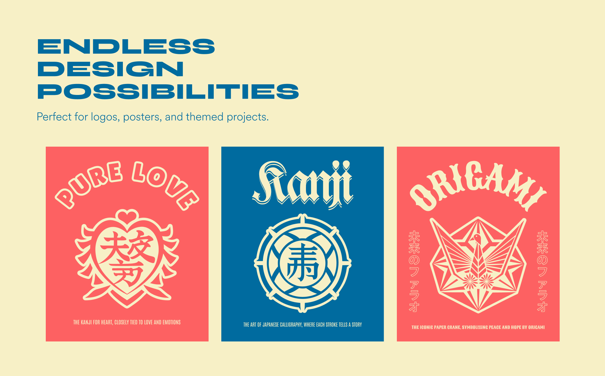 Japanese kanji symbols are unique and authentic symbols that add a sophisticated touch to any design project. Ideal for websites, branding, or personal art. Whether you’re creating logos, icons, or just adding a touch of Japanese artistry to your work, these symbols offer endless creative expression opportunities. Give your projects an authentic, traditional touch with Kanji today!