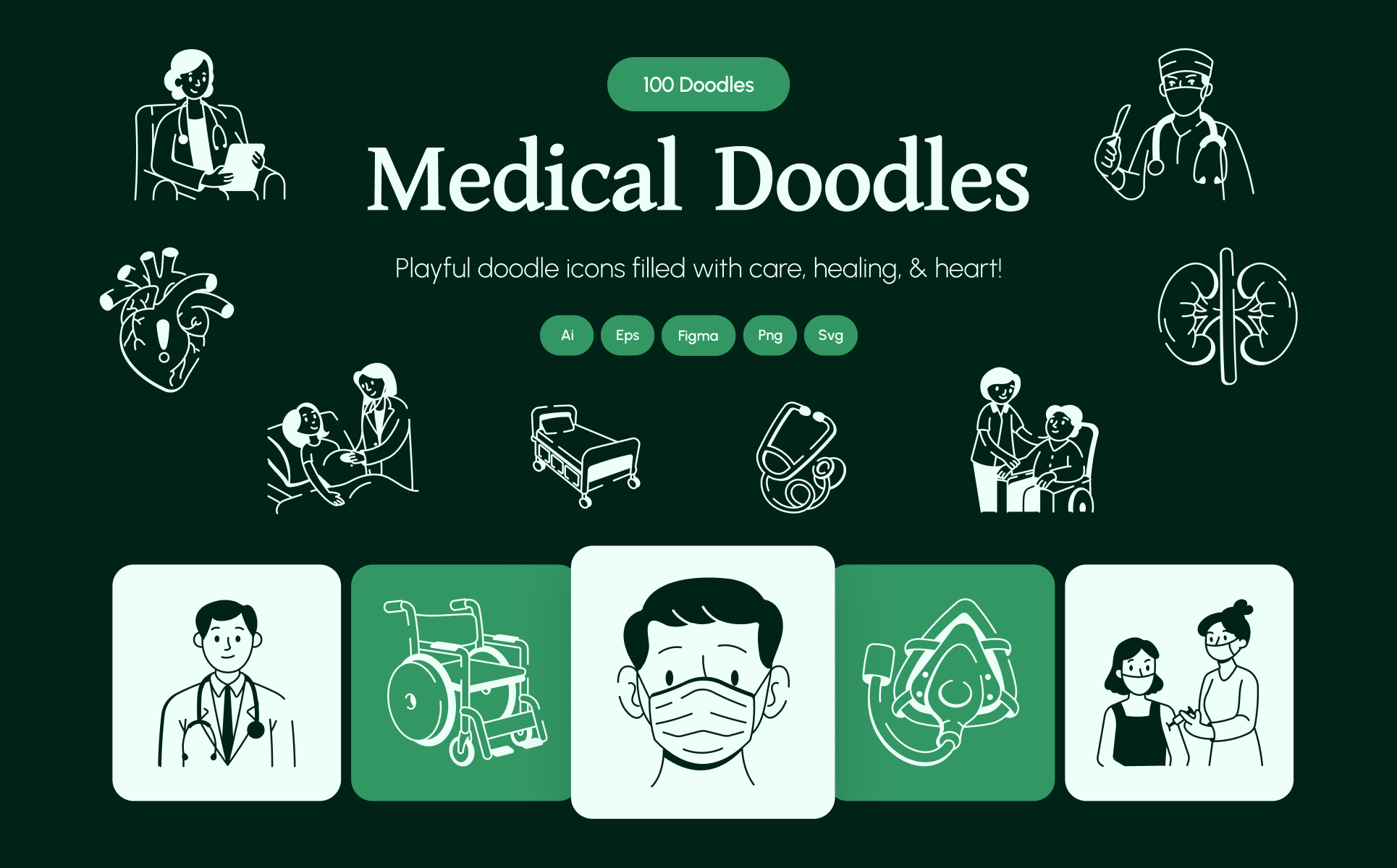 Elevate your healthcare projects with this medical doodles set. These icons are perfect for everything from clinic branding to health blogs, educational content, or even wellness apps. The playful hand-drawn style adds warmth and personality, helping your audience connect more easily with important information. Whether you're designing for patients, professionals, or students, these doodles make it all feel a little more fun and a lot more engaging.