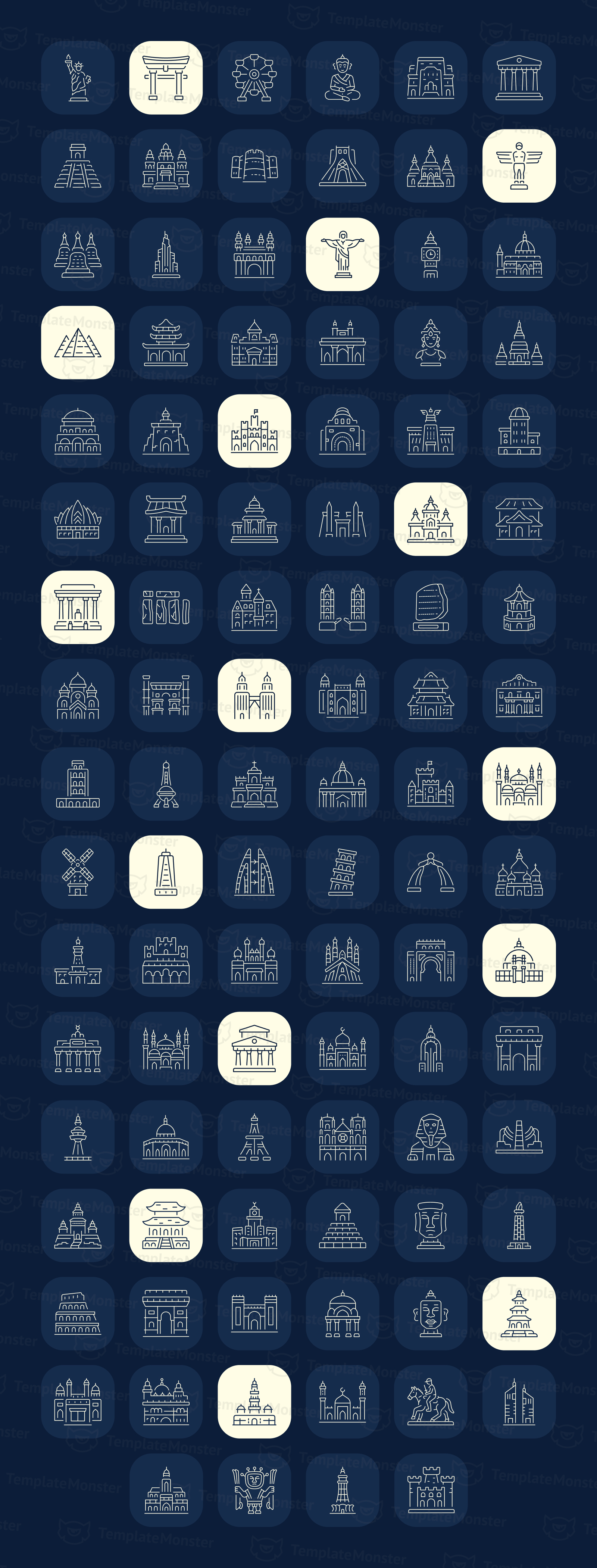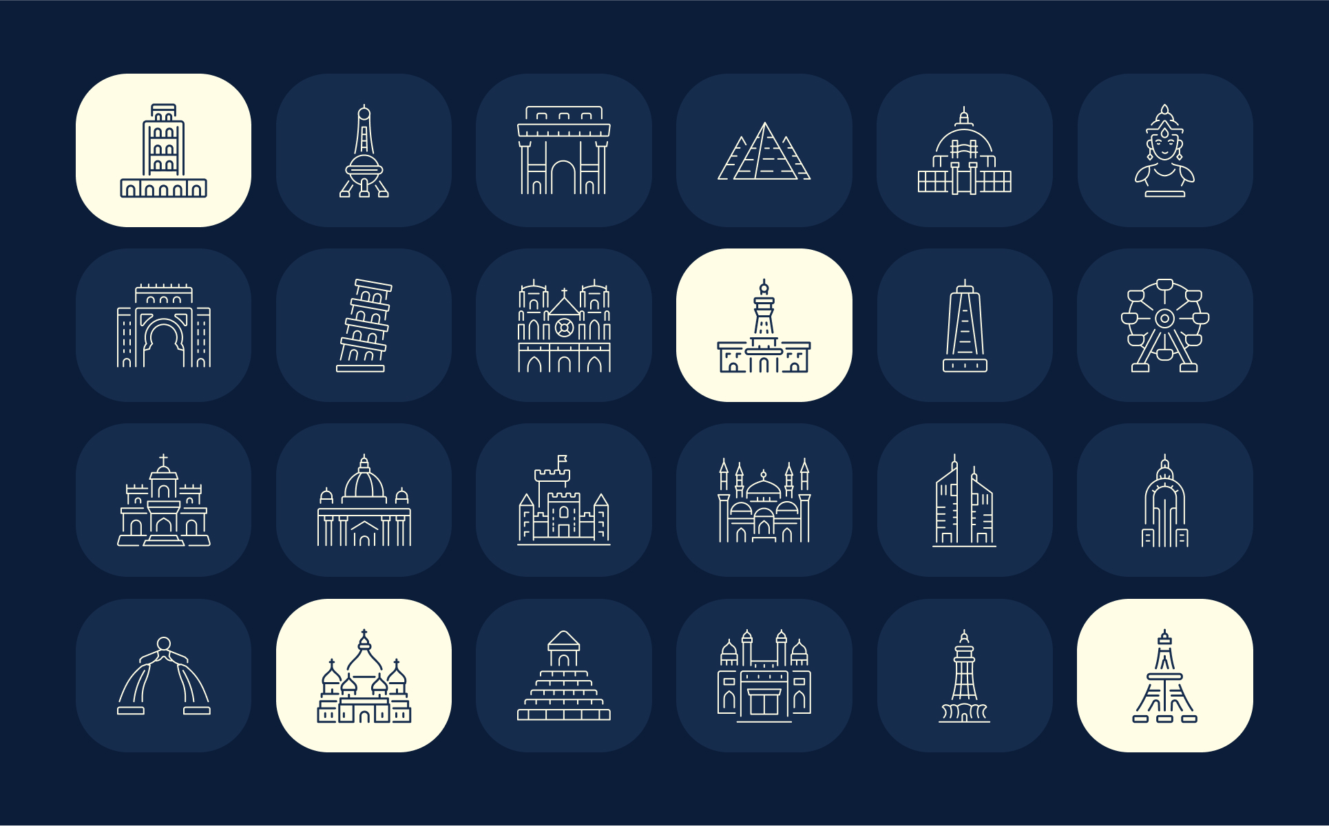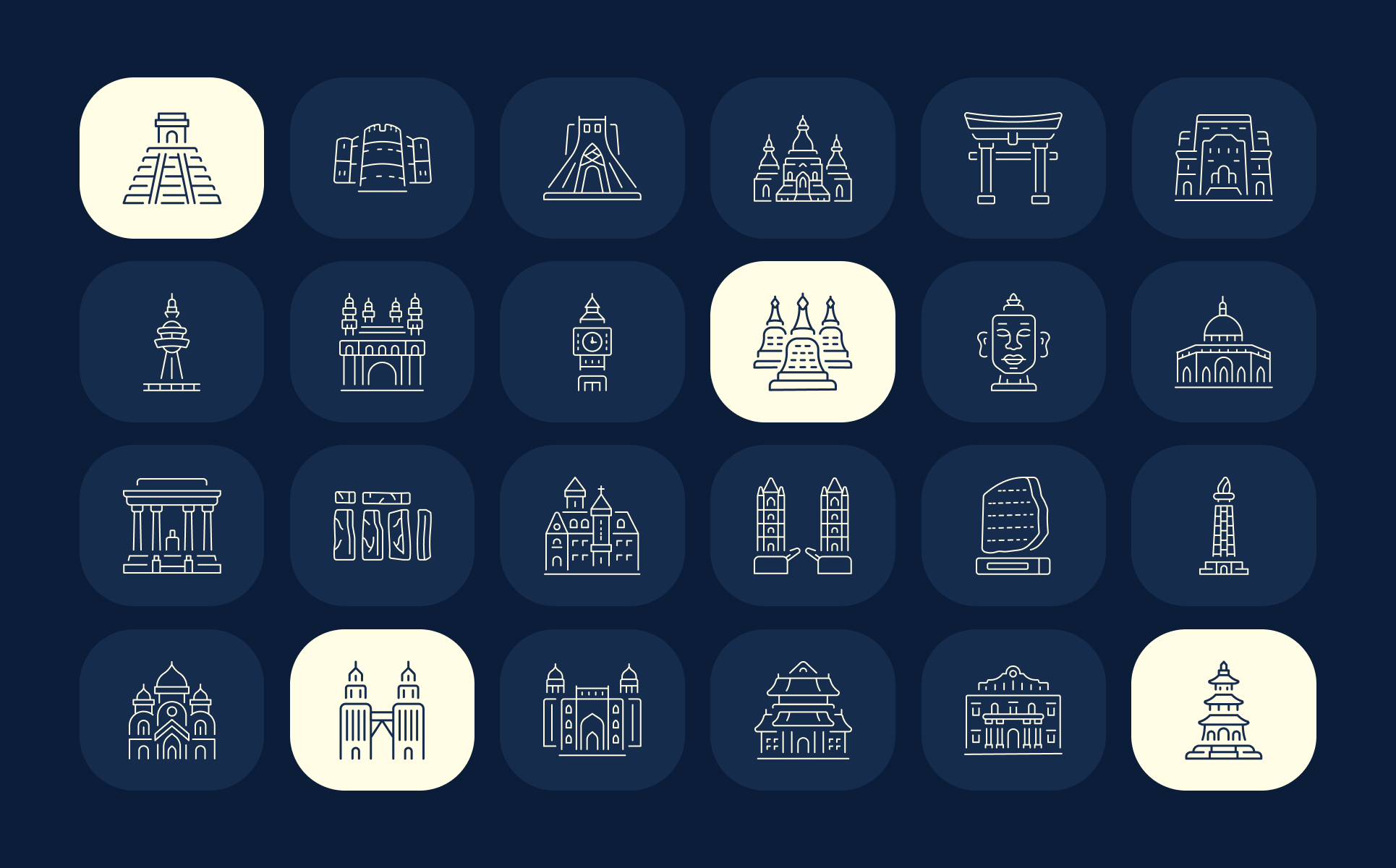 - Clean, vector-style icon of iconic monuments