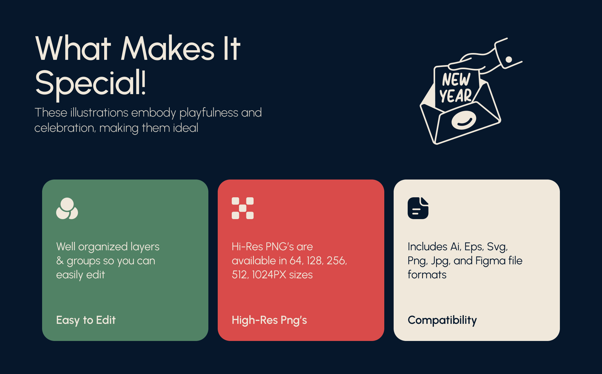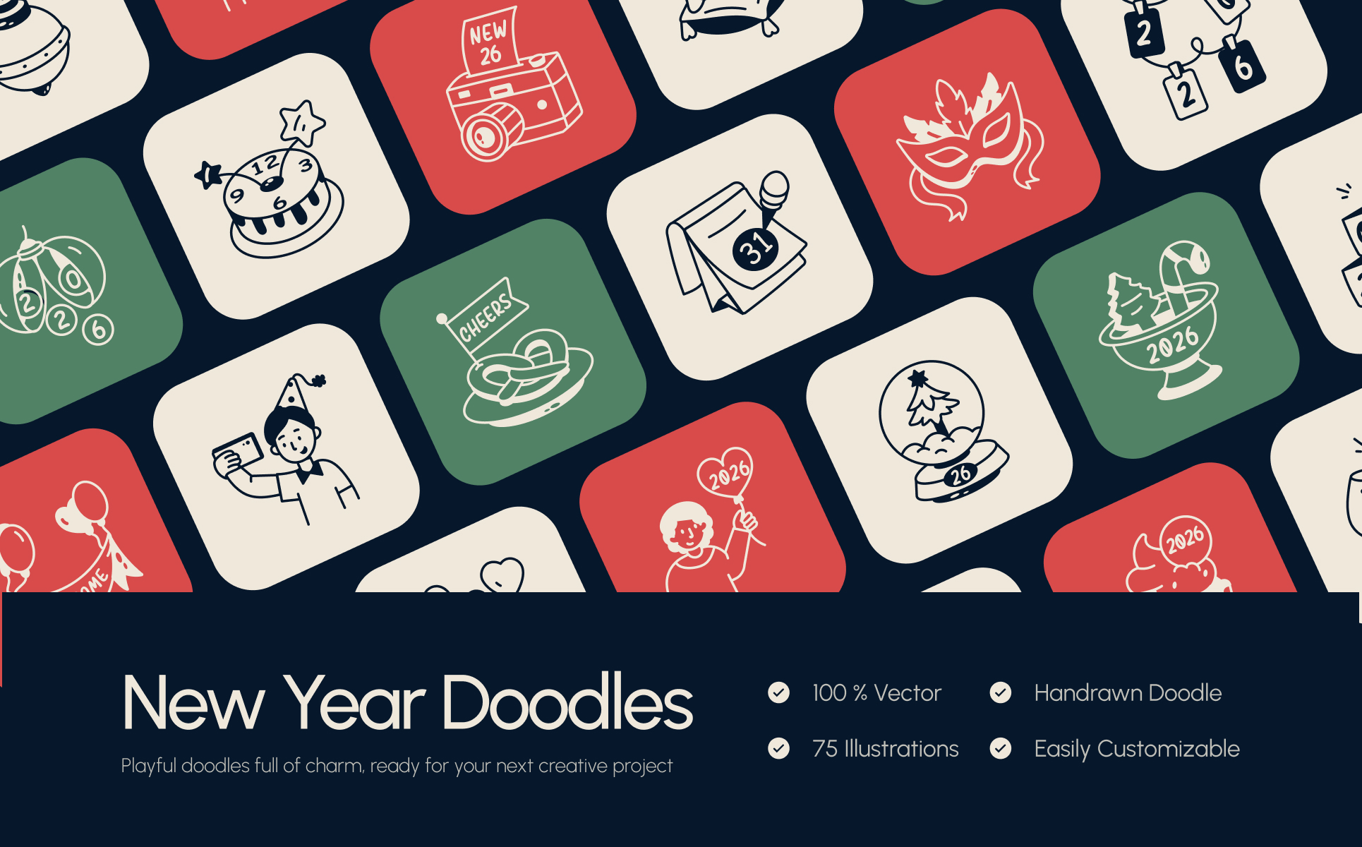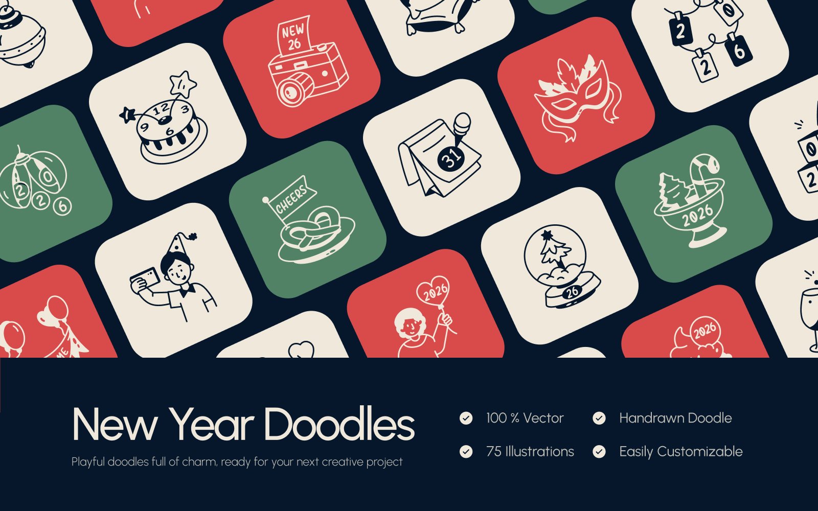 Bring your projects to life with this New Year doodles art set. From greeting cards and invitations to social media posts and festive decorations, these hand drawn doodles are perfect for adding charm and warmth to any design. Whether you’re preparing digital content, branding for seasonal events, or simply creating something personal, this set gives you endless creative possibilities to celebrate the New Year in style.