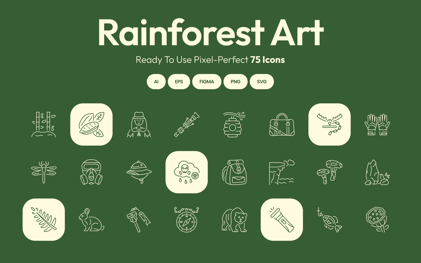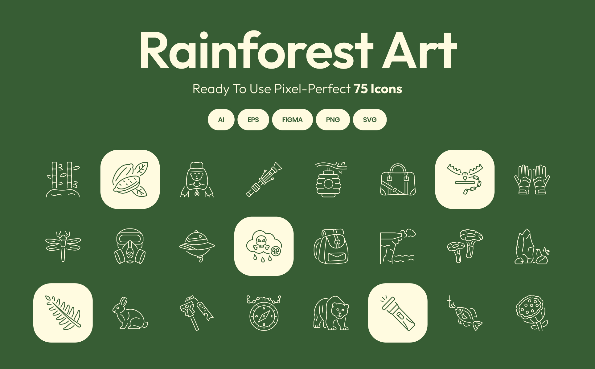 Step into the lush world of the rainforest with this rainforest art icon set. Perfect for websites, apps, posters, branding, and educational materials, these icons capture the beauty of rainforest animals, plants, and landscapes. Whether you’re creating eco-friendly campaigns, wildlife guides, or nature-inspired designs, this set provides the flexibility and quality you need for professional results.