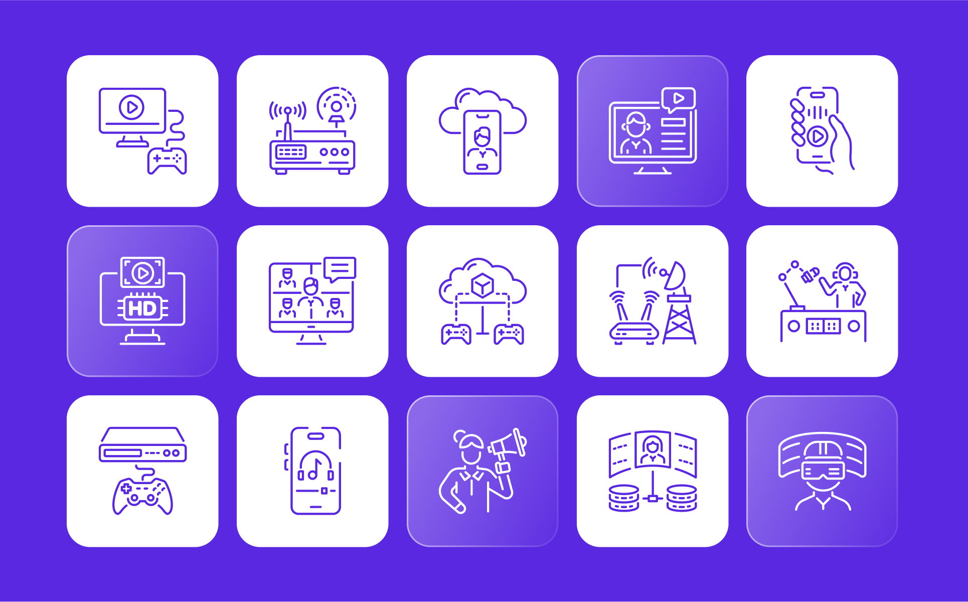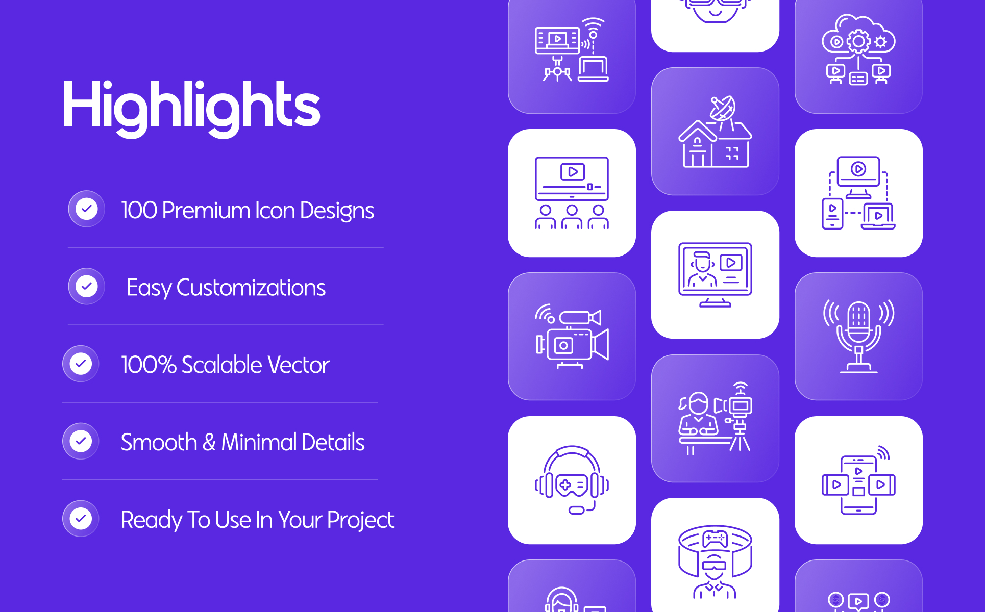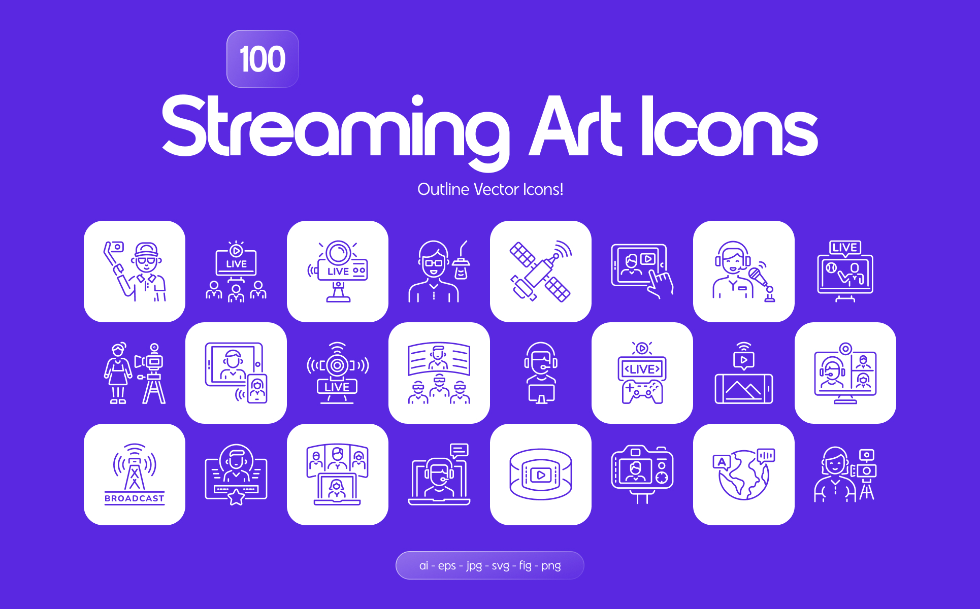 Enhance your streaming-related projects with this sleek and modern Streaming Art Icon Set Whether you are working on a video platform, a gaming channel, or a music app, these icons bring a professional and engaging touch to your design. These icons are easy to customize and integrate into your UI, social media, and web designs.