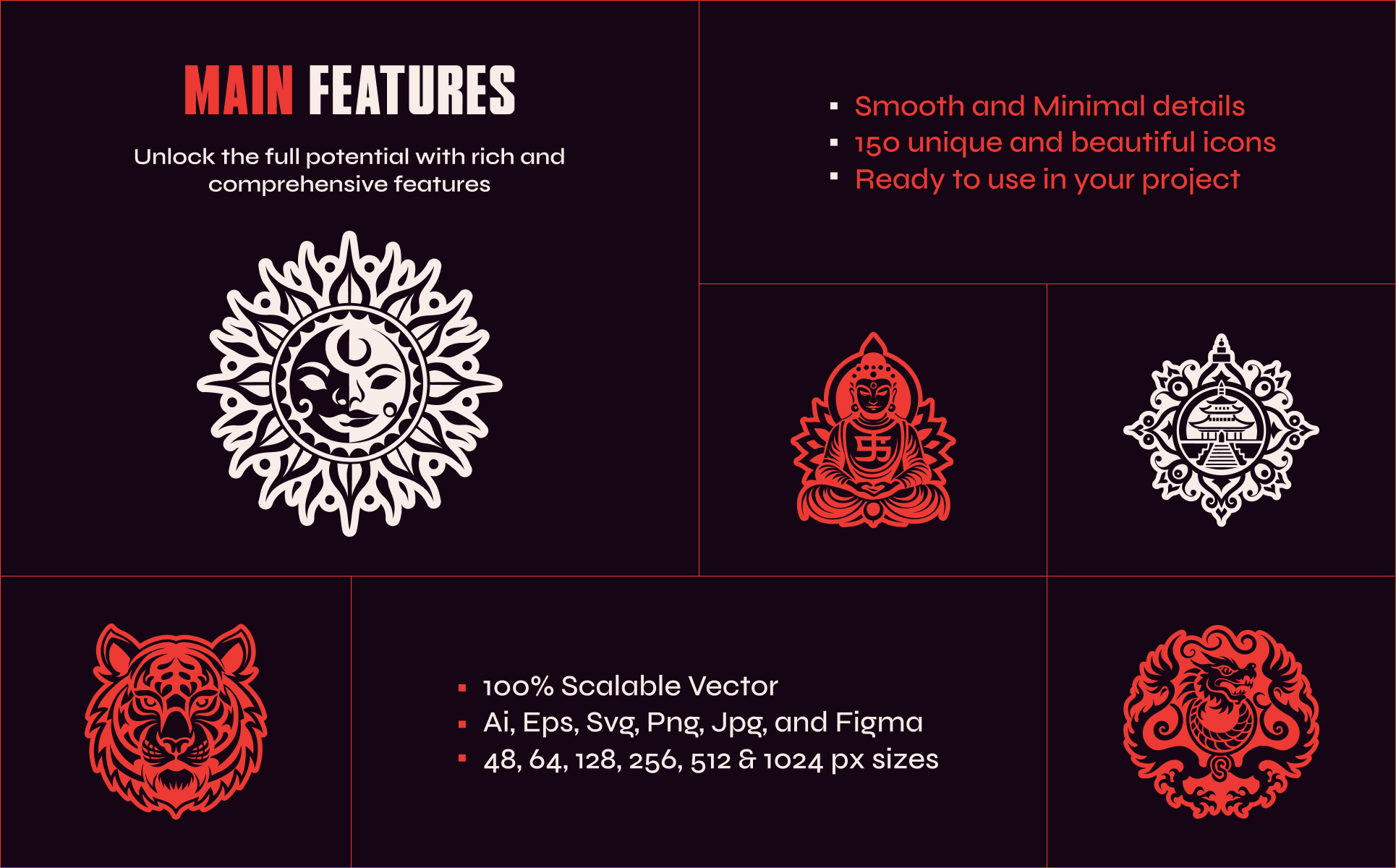 Discover the timeless beauty of tibetan culture through this intricately illustrated tibetan symbols set. Designed to spark creativity and evoke a sense of peace, these symbols are perfect for projects that aim to inspire, heal, or tell a deeper story. Whether you're crafting spiritual artwork, designing a meaningful tattoo, or adding a touch of mysticism to your brand, these designs effortlessly blend tradition with modern aesthetics. Let each symbol guide your imagination and bring mindful energy to your creative journey.