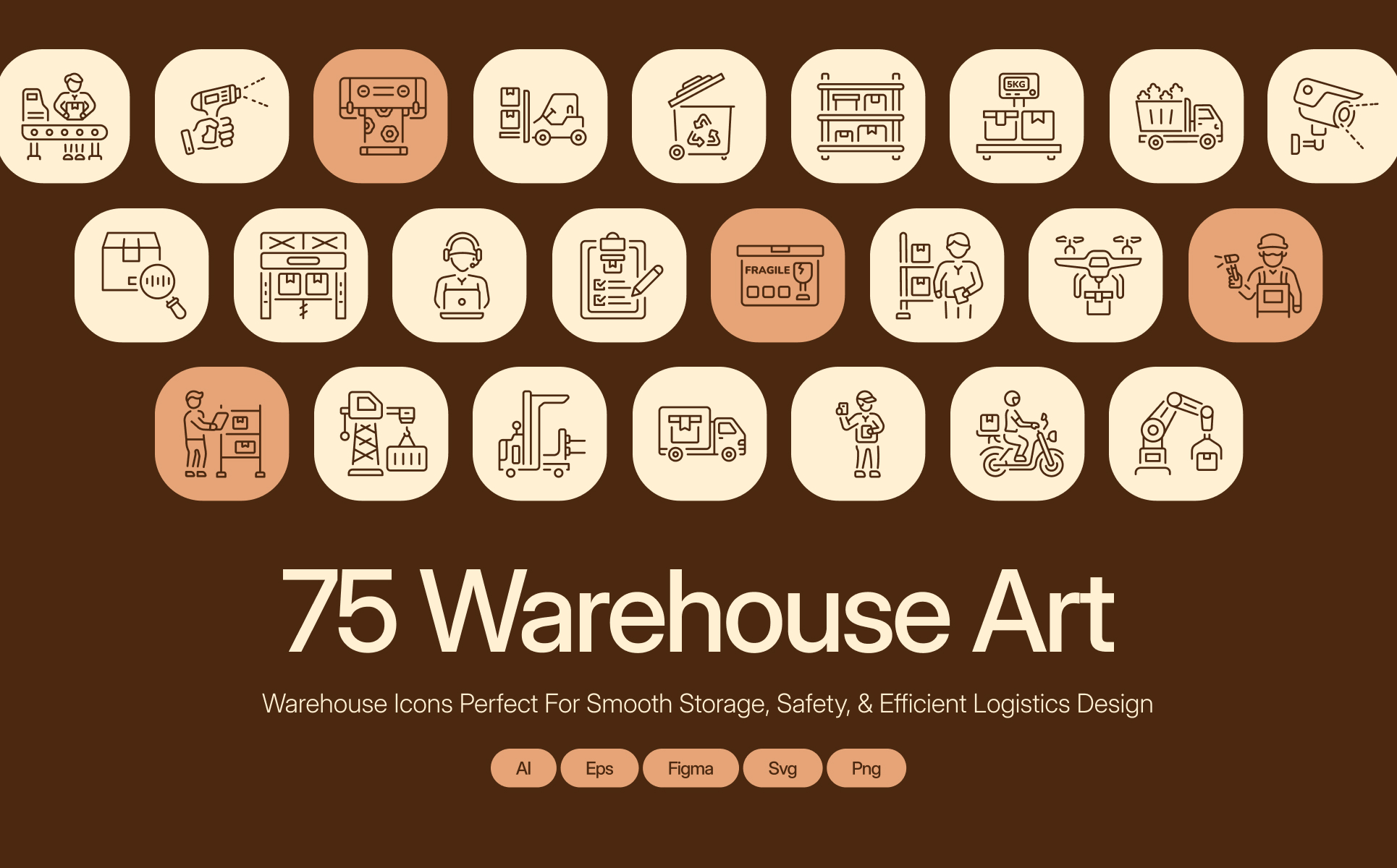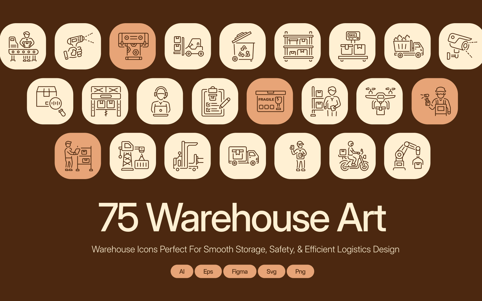 Bring order, clarity, and style to your logistics, supply chain, and warehouse-themed projects with this professional Warehouse Icon Art Set. Perfect for websites, apps, presentations, infographics, and printed materials, these icons cover everything from inventory storage and material handling to warehouse safety and transport. Designed for versatility, each icon comes in multiple file formats and sizes, ensuring smooth integration into any project, whether you’re building a corporate dashboard or a playful educational guide.