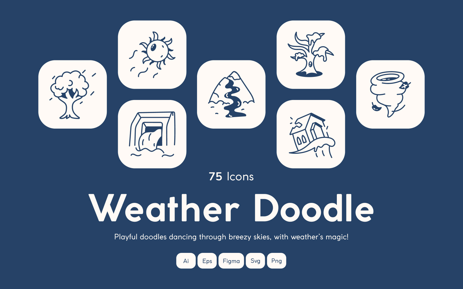 Professional Weather Doodle Art Set, perfect for websites, mobile apps, social media posts, or educational material, these hand-drawn icons cover everything from sunny skies to wild storms. Whether you’re a designer, content creator, or teacher, these illustrations add a whimsical touch to your weather-related content. With multiple formats and sizes, it’s super easy to plug these into your workflow, no matter your tool of choice.