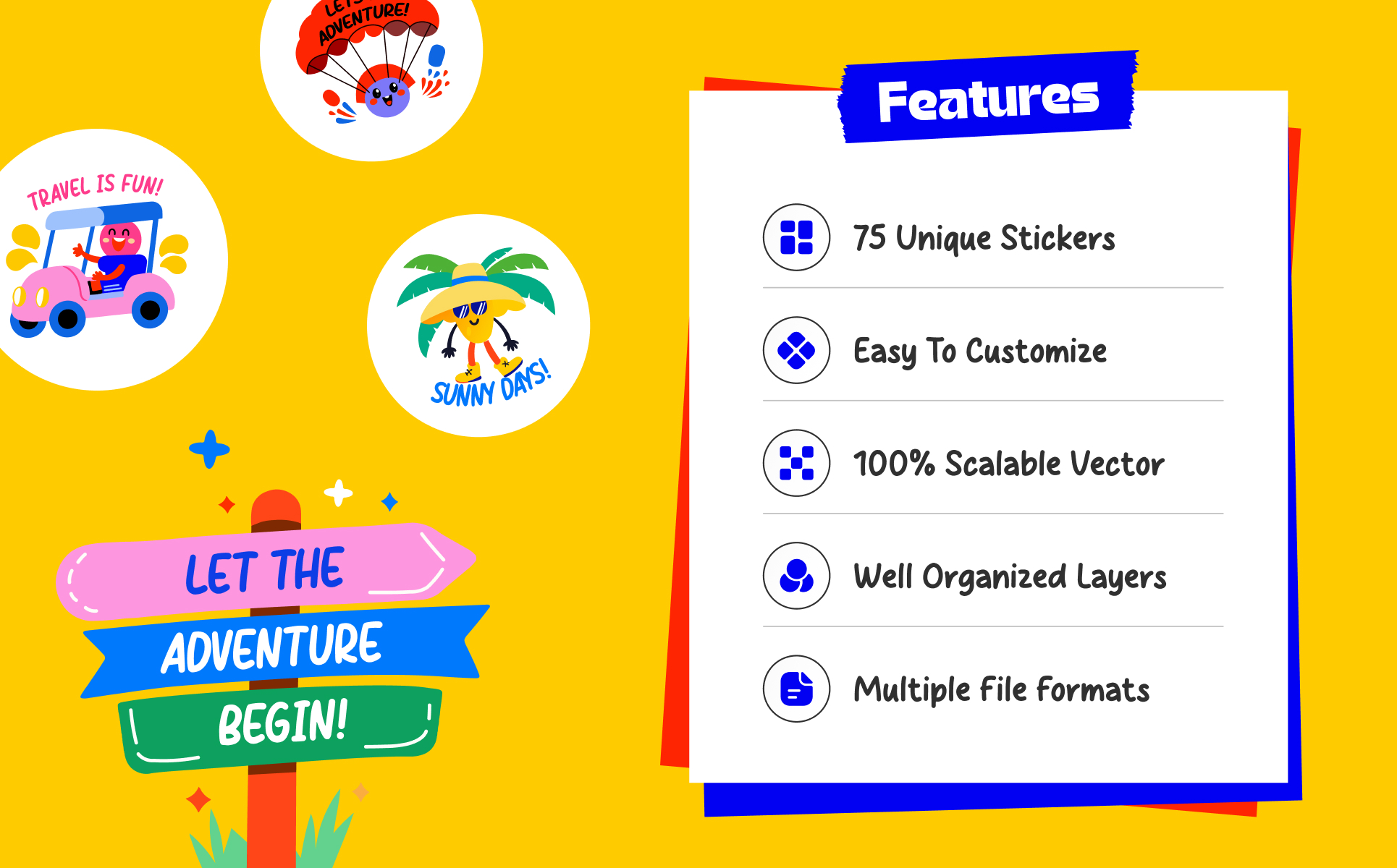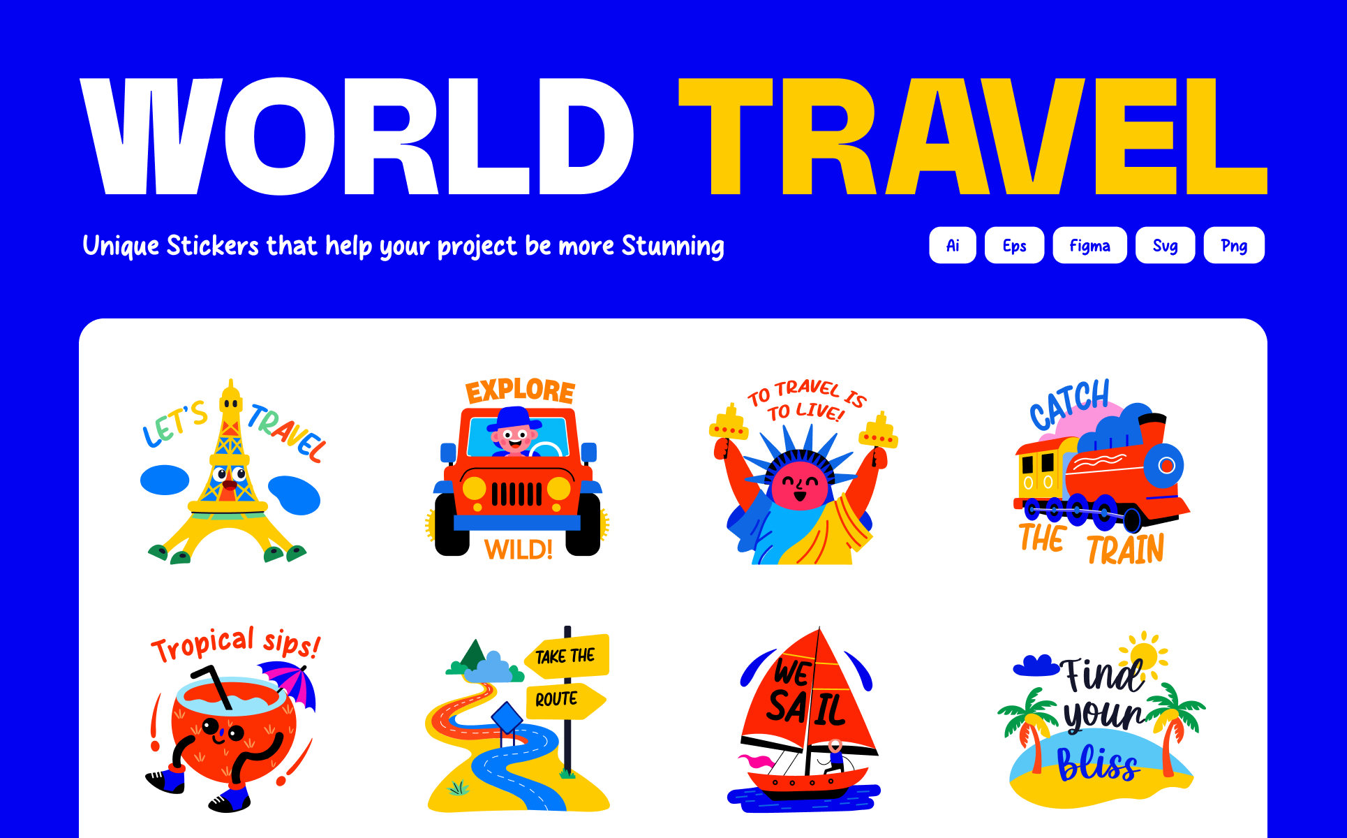 - Vibrant Icons: Each sticker is crafted to capture the essence of world travel and adventure.