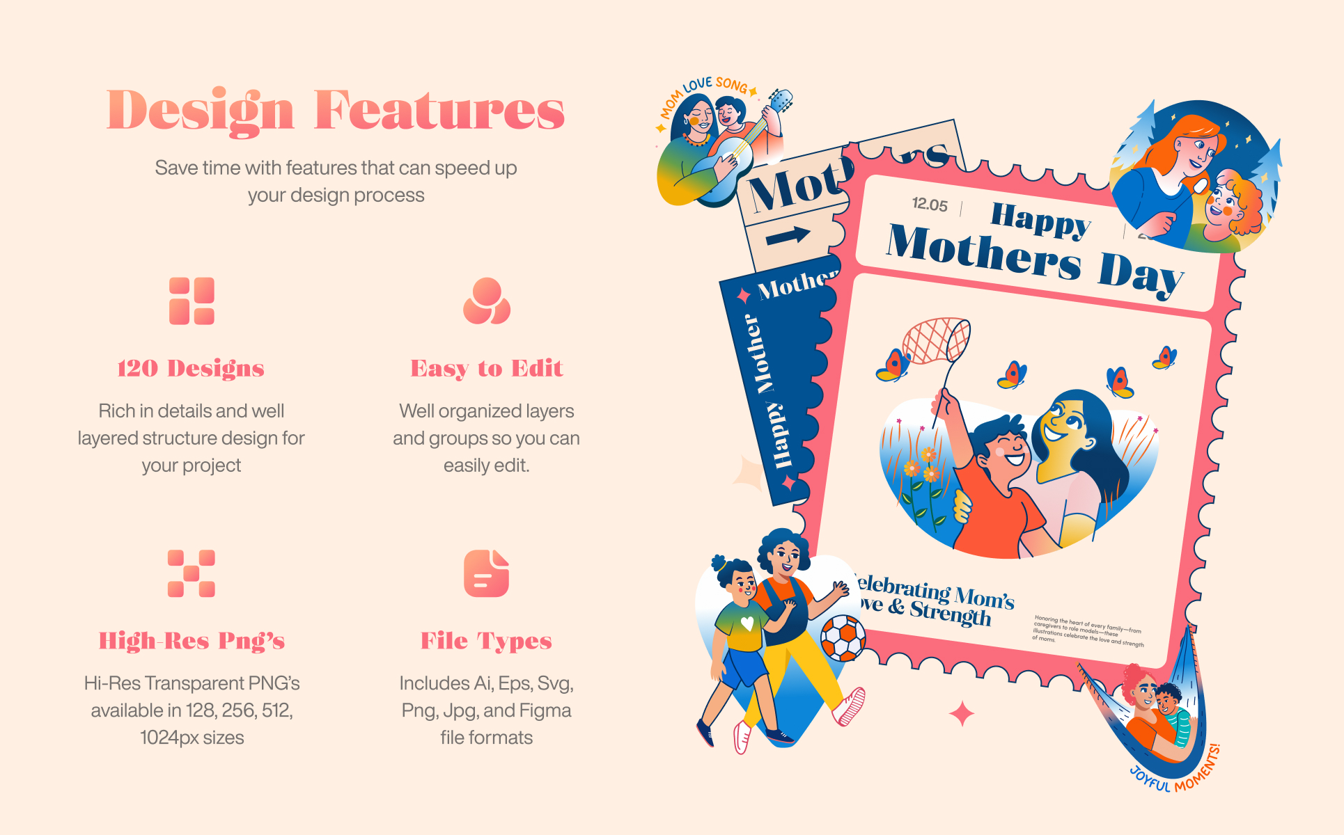 - Ideal for Mother’s Day cards, gifts, crafts, and digital projects.