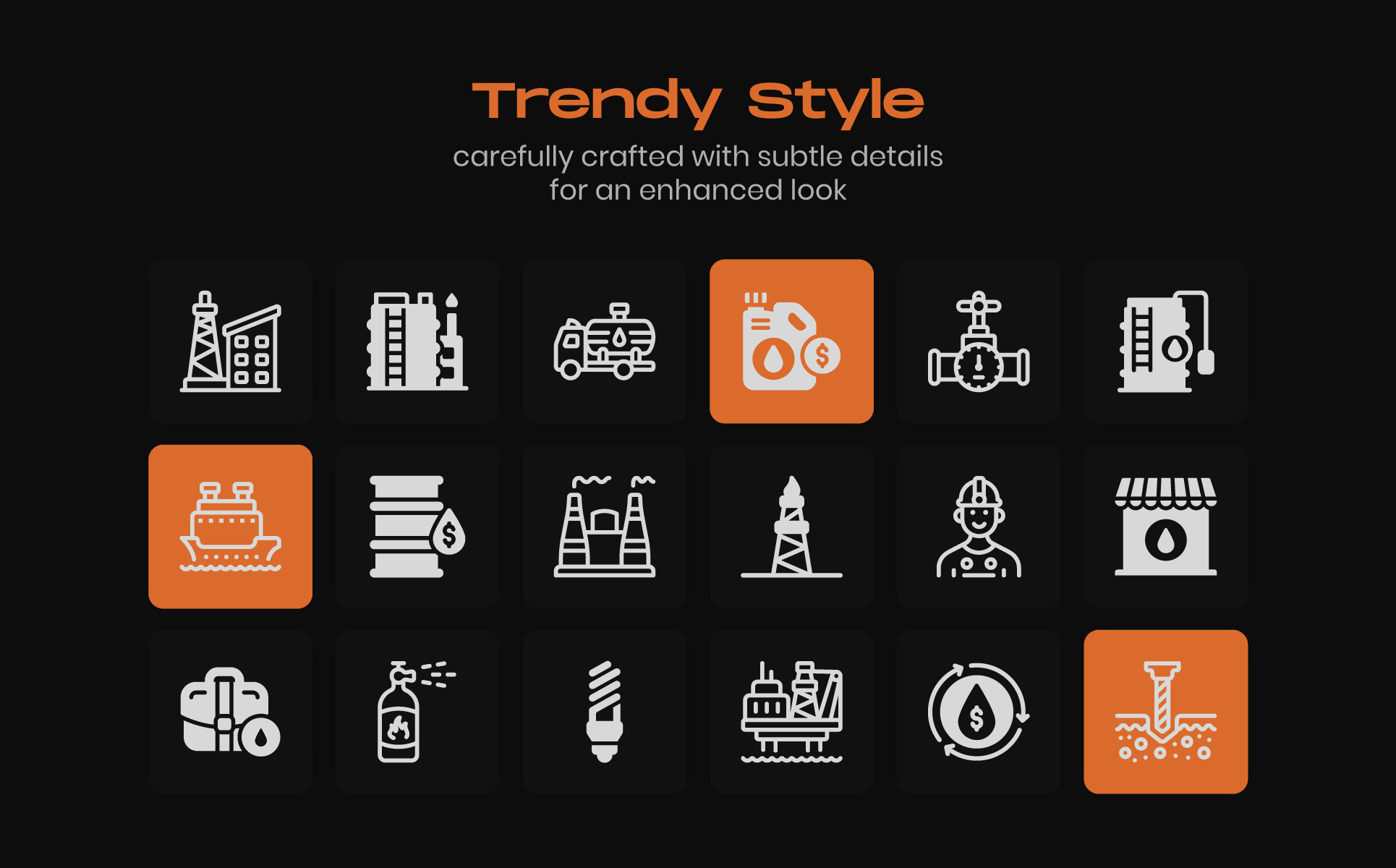 Grab an exclusive pack of oil industry linear icons. We provide this pack with a range of editable and customized glyph trendy vectors. This extensive pack of industrial icons are perfectly suitable for web and applications. Download and enjoy.