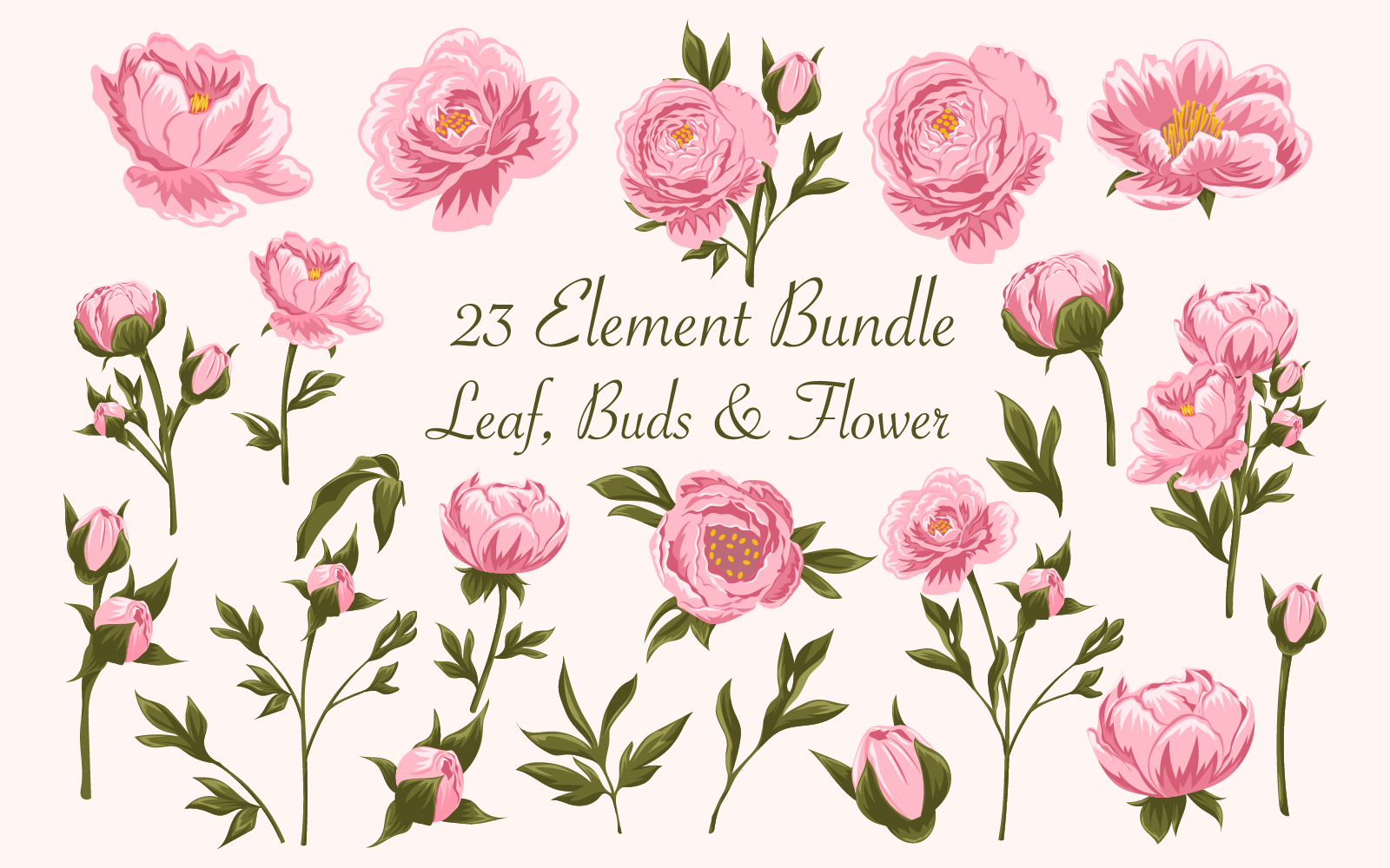 - PNG,AI & EPS Files of Pink Poeny Flower Collection