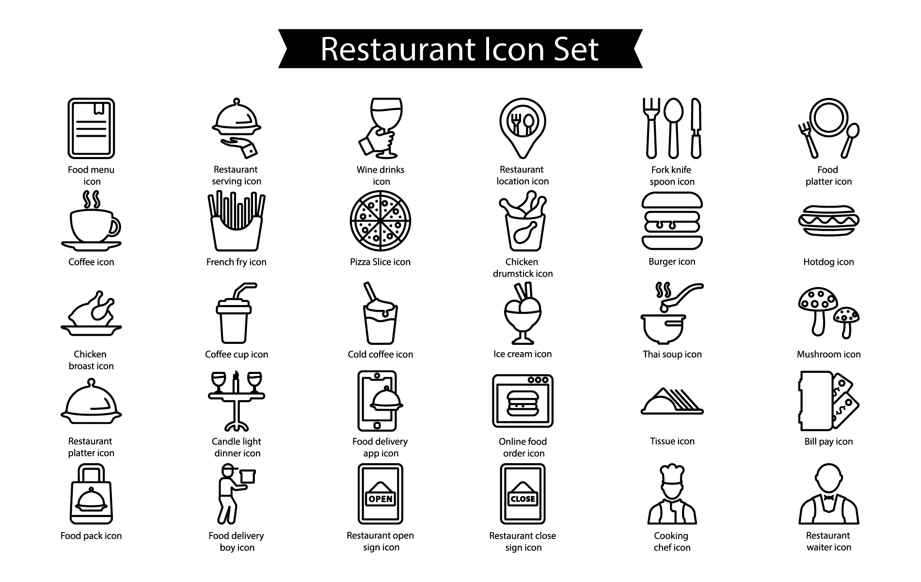 Beautiful, meticulously designed 30 Restaurant Line Icons. Perfect for use in designing and developing websites, printed materials, presentations, Promotional Materials, Illustrations, Infographics or any type of design projects
