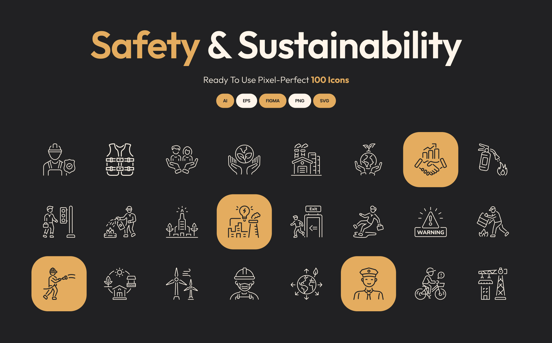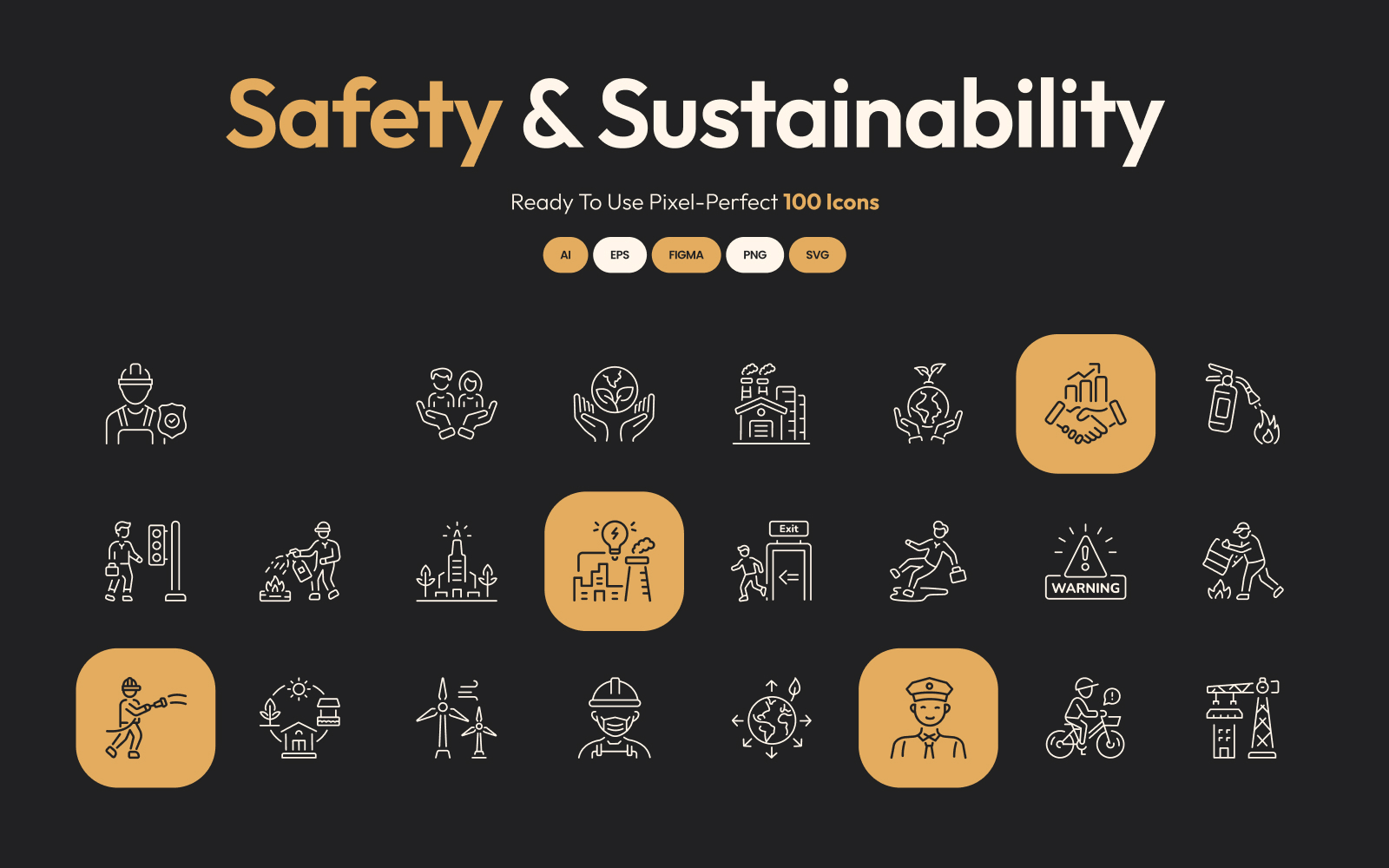 Create purposeful, responsible, and visually appealing projects with this Safety and Sustainability Icon Set. Whether you are working on health and safety presentations, eco-friendly initiatives, ESG reports, or community welfare designs, these clean, modern icons make your message instantly clear and engaging. Available in flexible file formats, this pack helps designers and brands communicate important topics with a professional style.