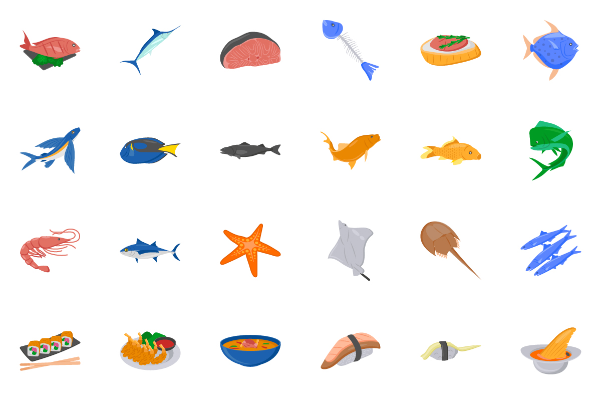 Seafood Icons Pack – Premium Aquatic & Marine Life Illustrations Icon Set