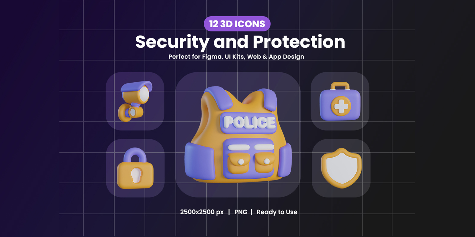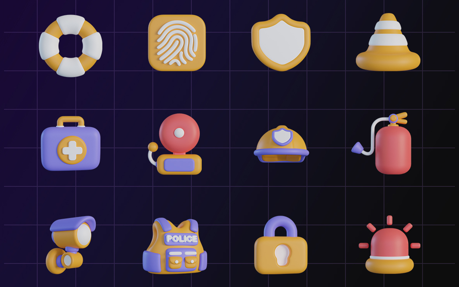 This 3D icon pack brings security and protection concepts to life with glossy finishes, bold shapes, and high-resolution renders. From shields and padlocks to surveillance cameras and alarms, this set is ideal for cybersecurity, safety, and privacy-focused projects. Perfect for digital platforms, security dashboards, and awareness campaigns, these icons combine modern chubby style with clear visual storytelling.