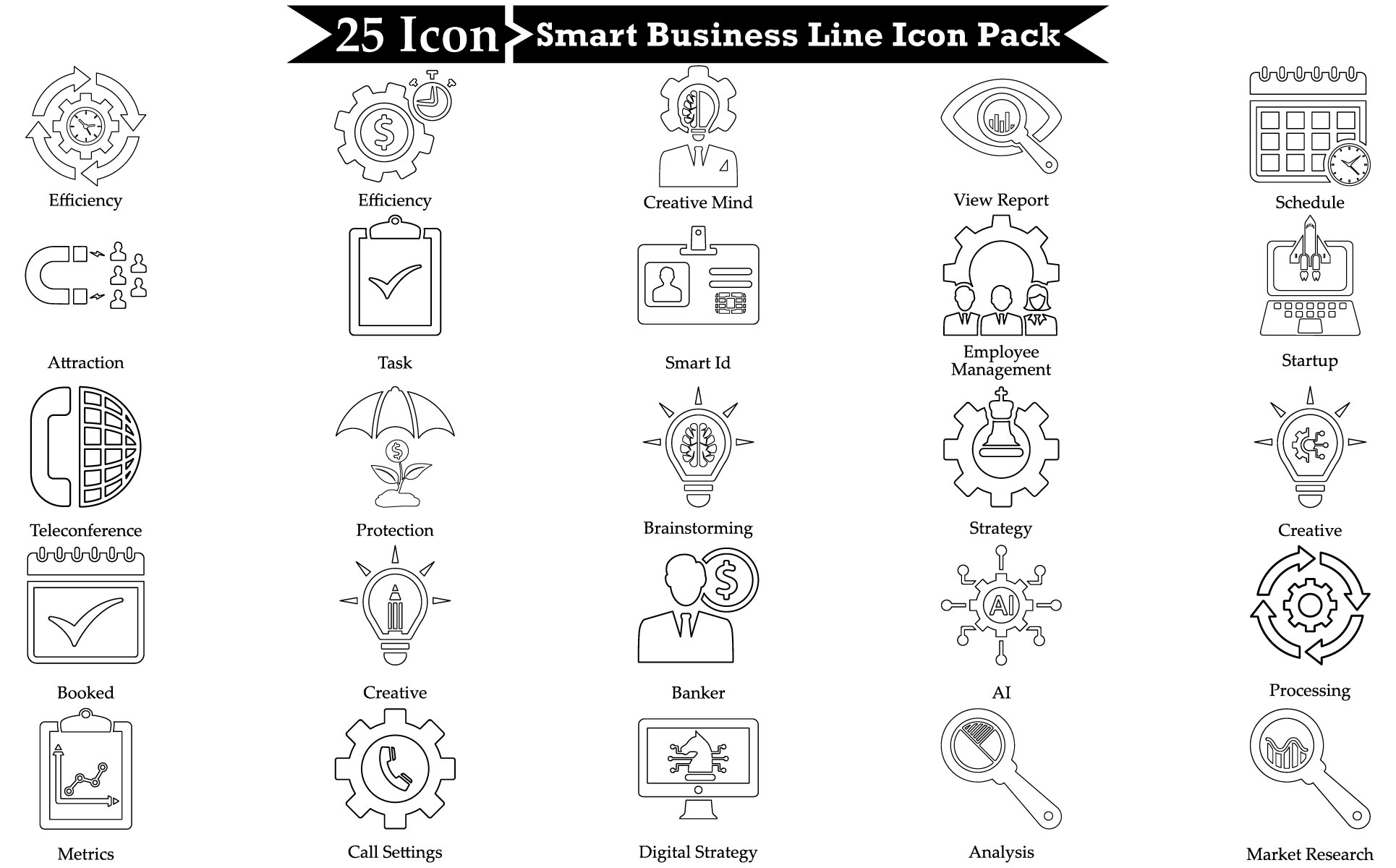 Beautiful, meticulously designed 25 Smart Business Line Icons Pack. Perfect for use in designing and developing websites, printed materials, presentations, Promotional Materials, Illustrations, Info graphics or any type of design projects