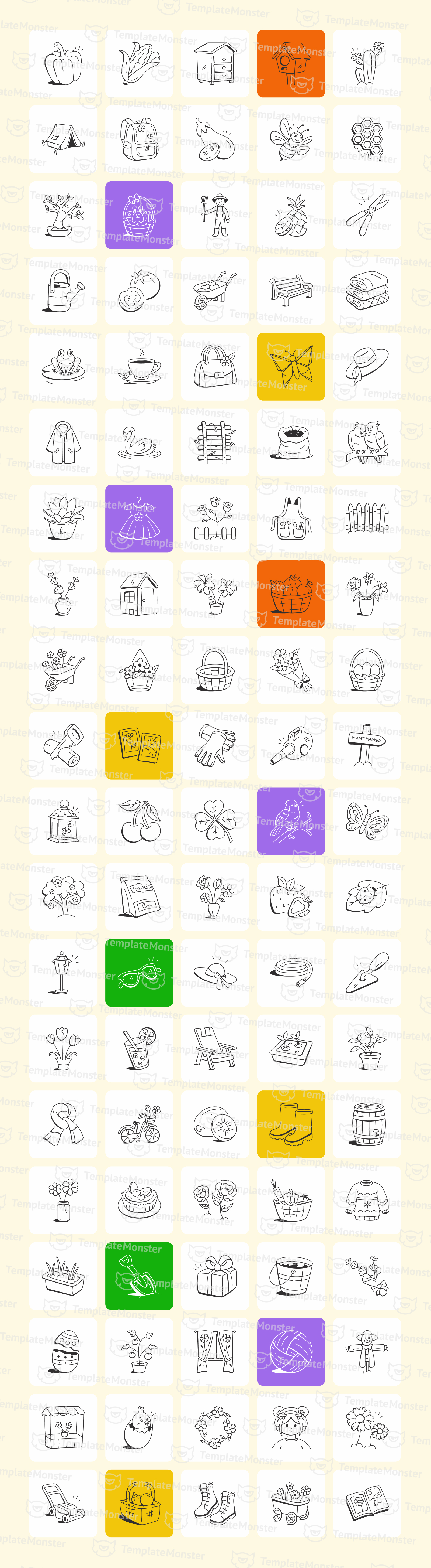 Springtime and Garden Doodles Set Icon Set