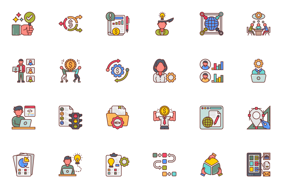 - Includes AI, EPS, PDF, JPG, SVG (separate for each icon), PNG File (64 px, 128 px, 256 px, 512 px) formats for compatibility with various design tools and platforms.